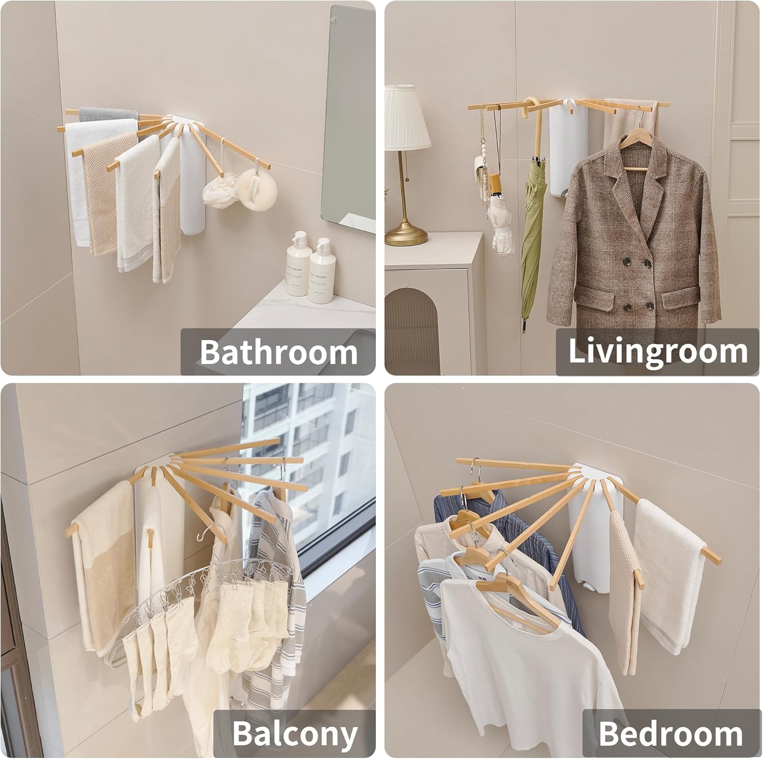• Foldable Design:Clothes drying rack foldable has 7 adjustable rods and 2 grooves each rods, you can expand the number of arms you need according to the space and usage needs;The adjustable design of this drying rack clothing wall mounted allows for enhanced airflow, facilitating quicker and more efficient drying