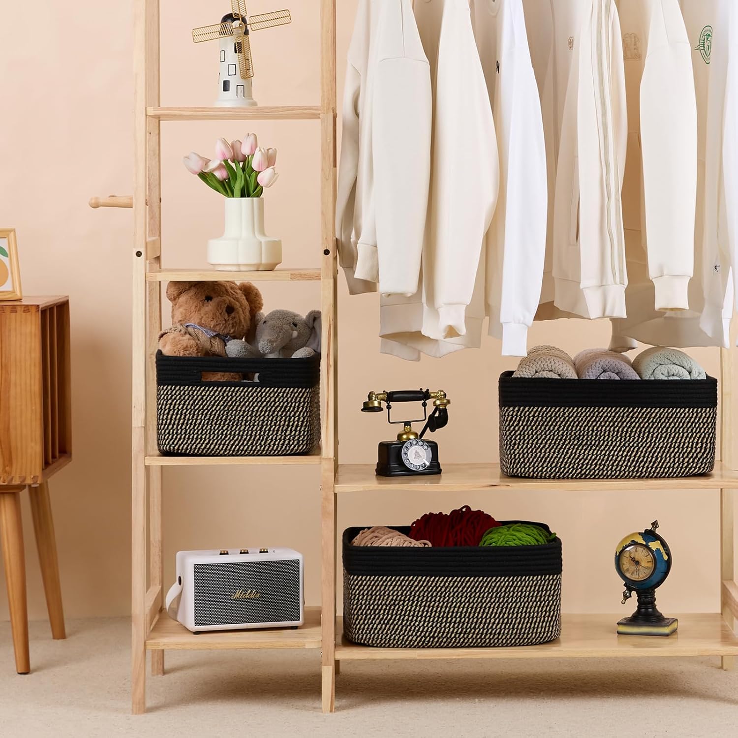 • [ Stylish Design ]: With a modern minimalist design, our woven rope baskets are a chic alternative to traditional rattan. They’re perfect for closets, changing table organizer, and cube shelves, adding warmth and texture to any room while tackling home clutter