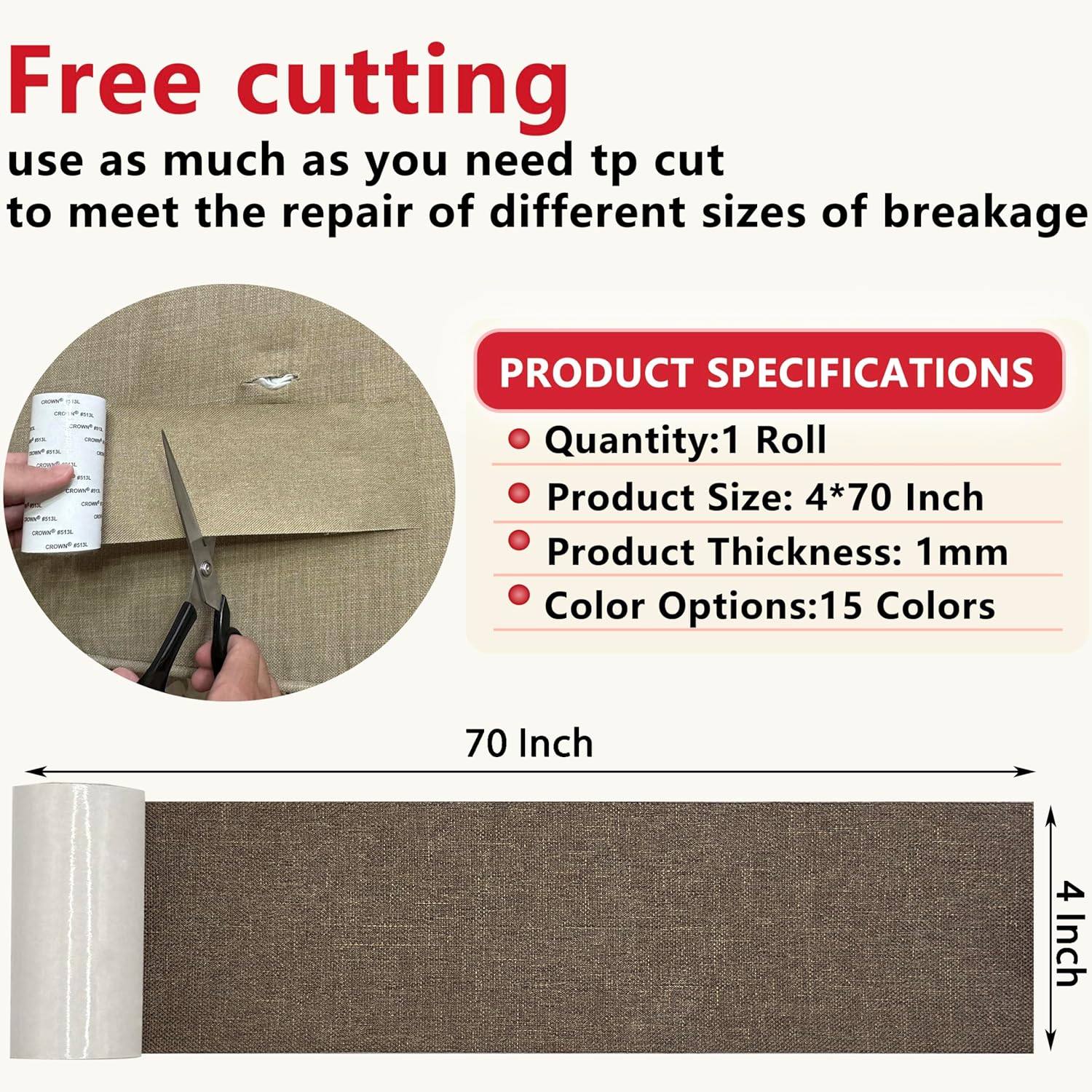 • STRIP SPECIFICATION, CUTTING FLEXIBLE:With how much to cut how much, perfect repair of various sizes of damaged area. Simple and convenient operation, fast repair furniture in 1 minute, paste the old sofa can be used as a new sofa, sofa repair patch with good repair effect at the same time can maintain the furniture beautiful