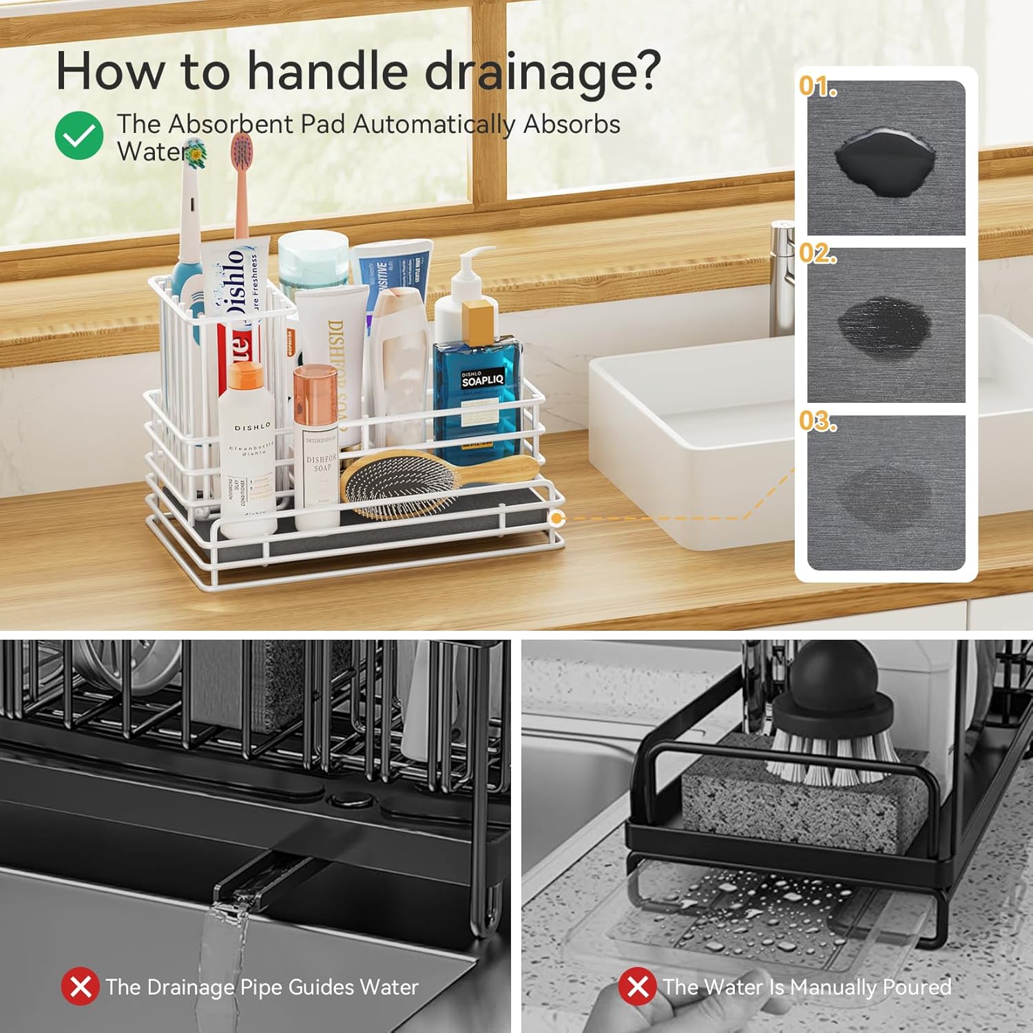 • 【Instant Dry Sink】Our bottom uses a diatomaceous earth absorbent pad, which automatically absorbs water and dries in 60 seconds; No longer need to manually pour water