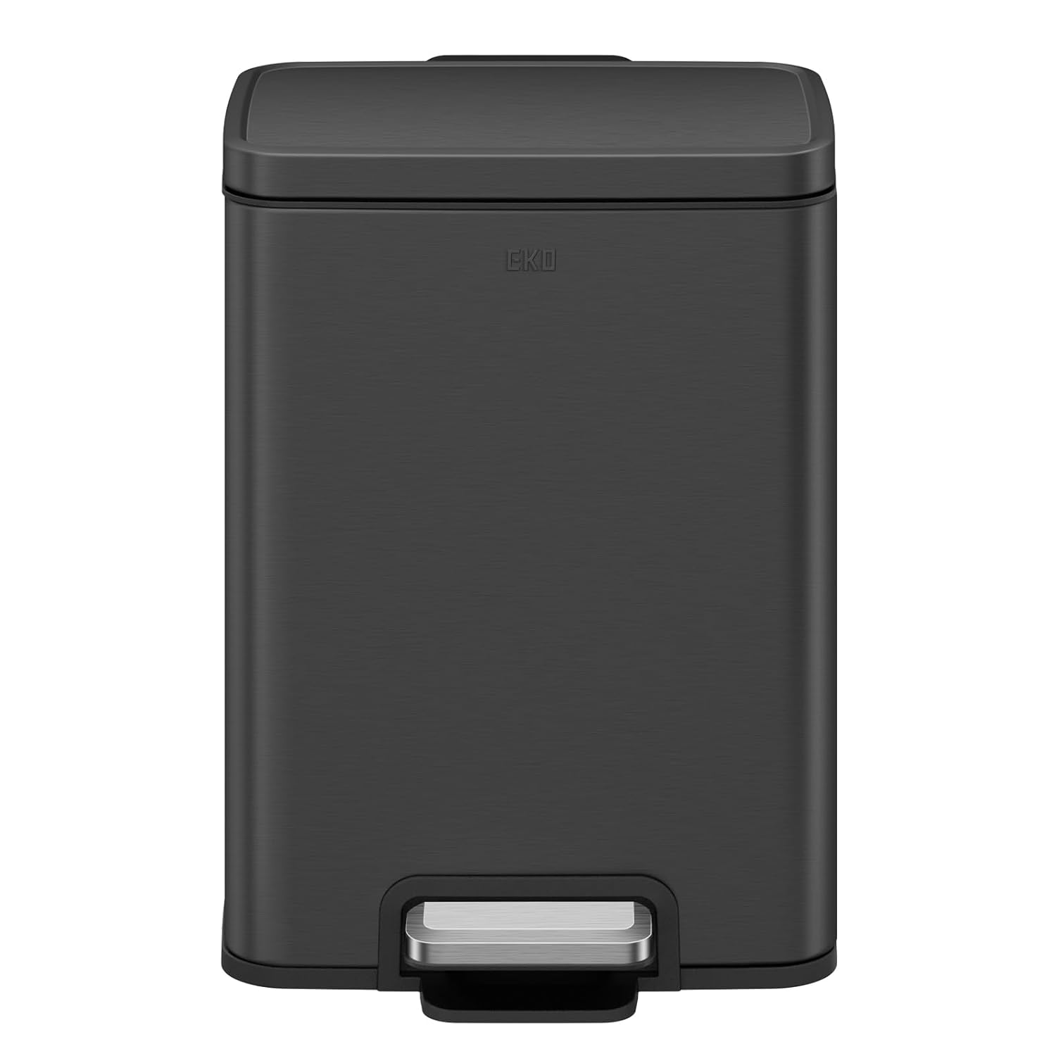 EKO Madison Matte Black 12L / 3.2 Gal Bathroom Trash Can with Lid and Removable Inner Basket, Rectangular Small Step Trash Can