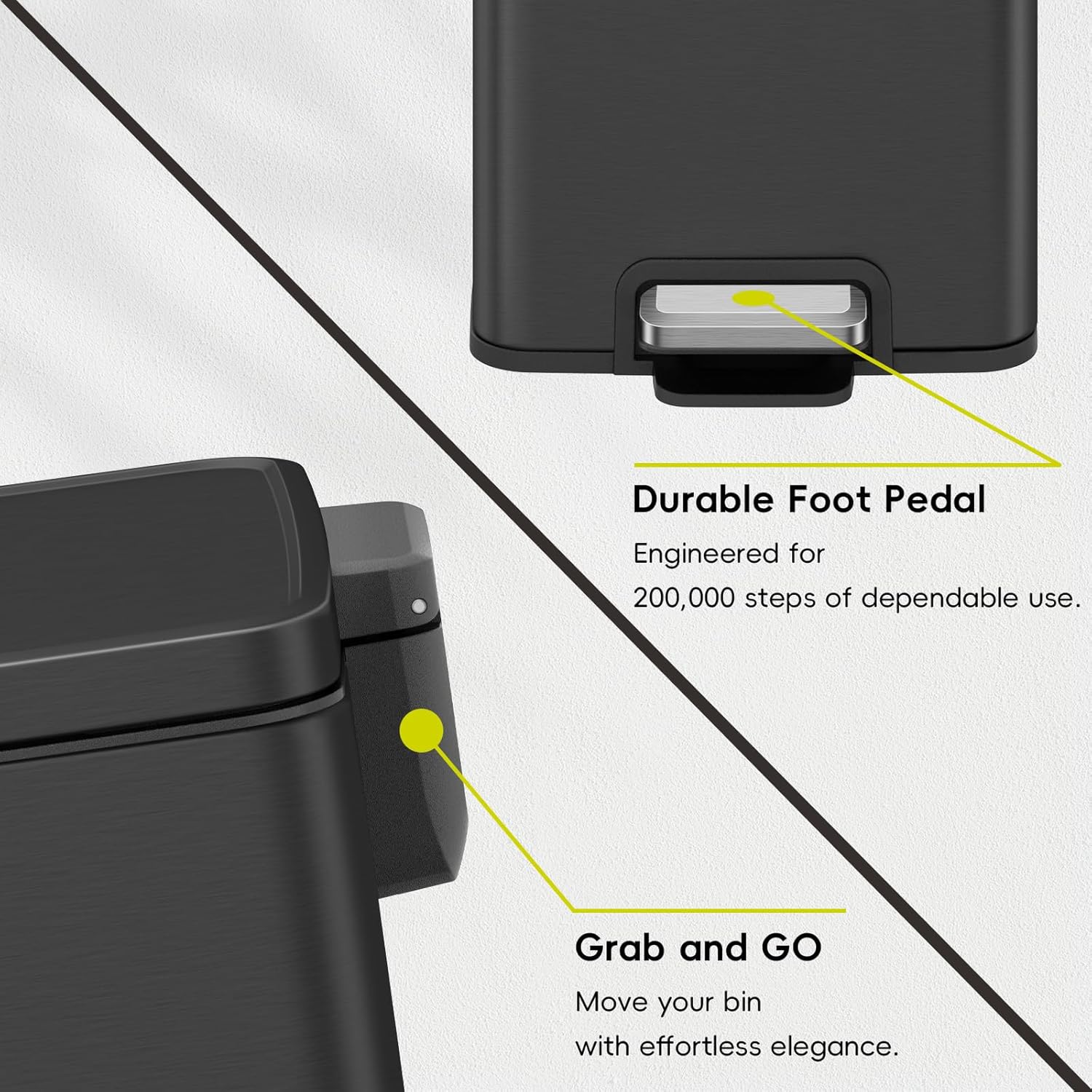 • PREMIUM STEEL PEDAL: Step up to durability with our enhanced stainless steel pedal. Built to withstand over 200,000 uses, this pedal ensures decades of reliable performance.