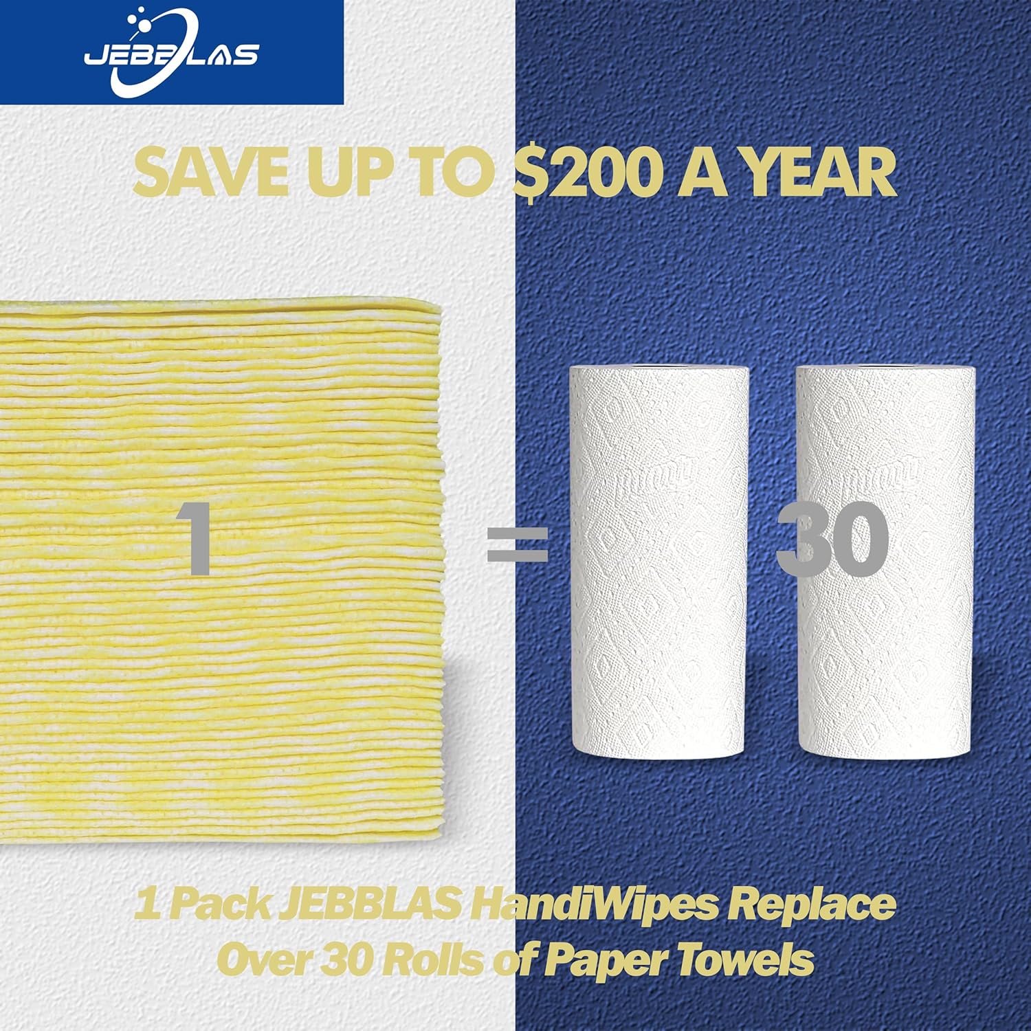 JEBBLAS Reusable Cleaning Cloths Handi Wipes Reusable Cloths Dry Cleaning Cloths Dish Towel Dish Cloths Handy Cleaning Wipes,Pack of 100, Yellow
