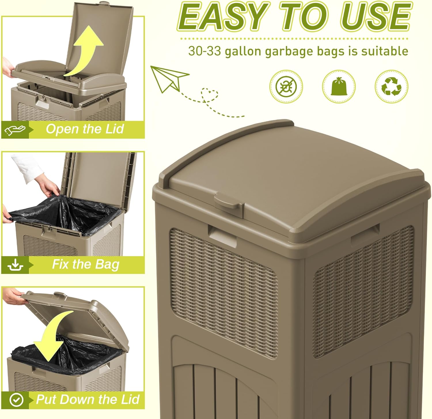 • Multi-Functional Use: This resin outdoor trash can withstand the effects of various outdoor elements, preventing the entry of water and dust. It can also be used as an outdoor storage bin, suitable for patio, swimming pool and other multi-scenario use needs.