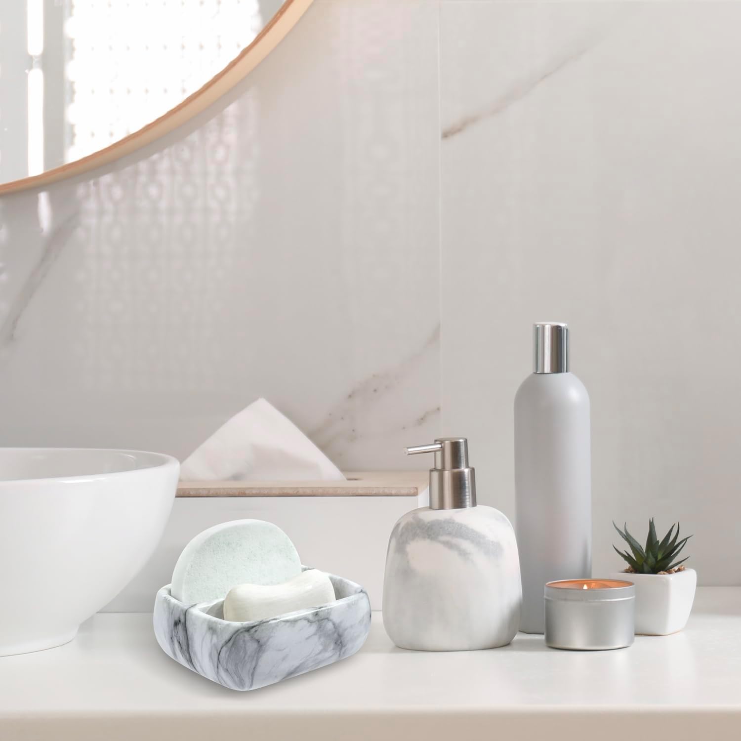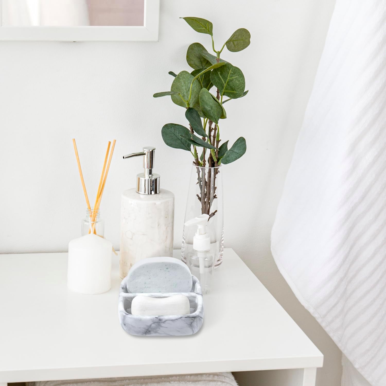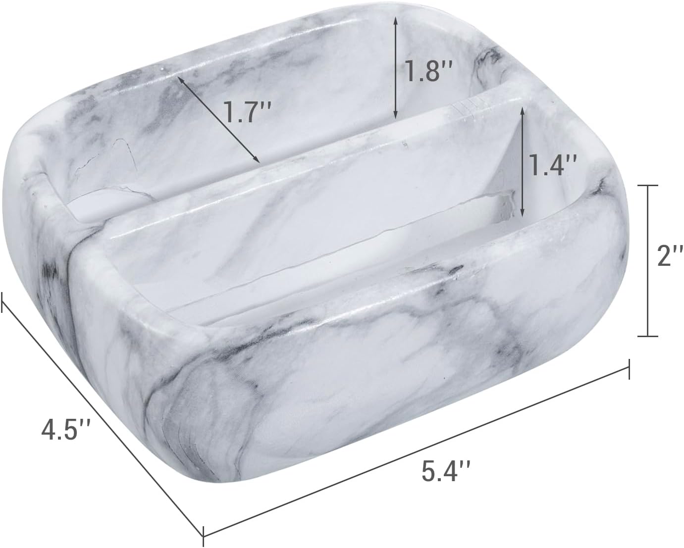 • Dual-sponge container is crafted from high-quality white resin with a realistic marble pattern that blends in seamlessly with a wide range of décor **Includes bottom foot pads**
