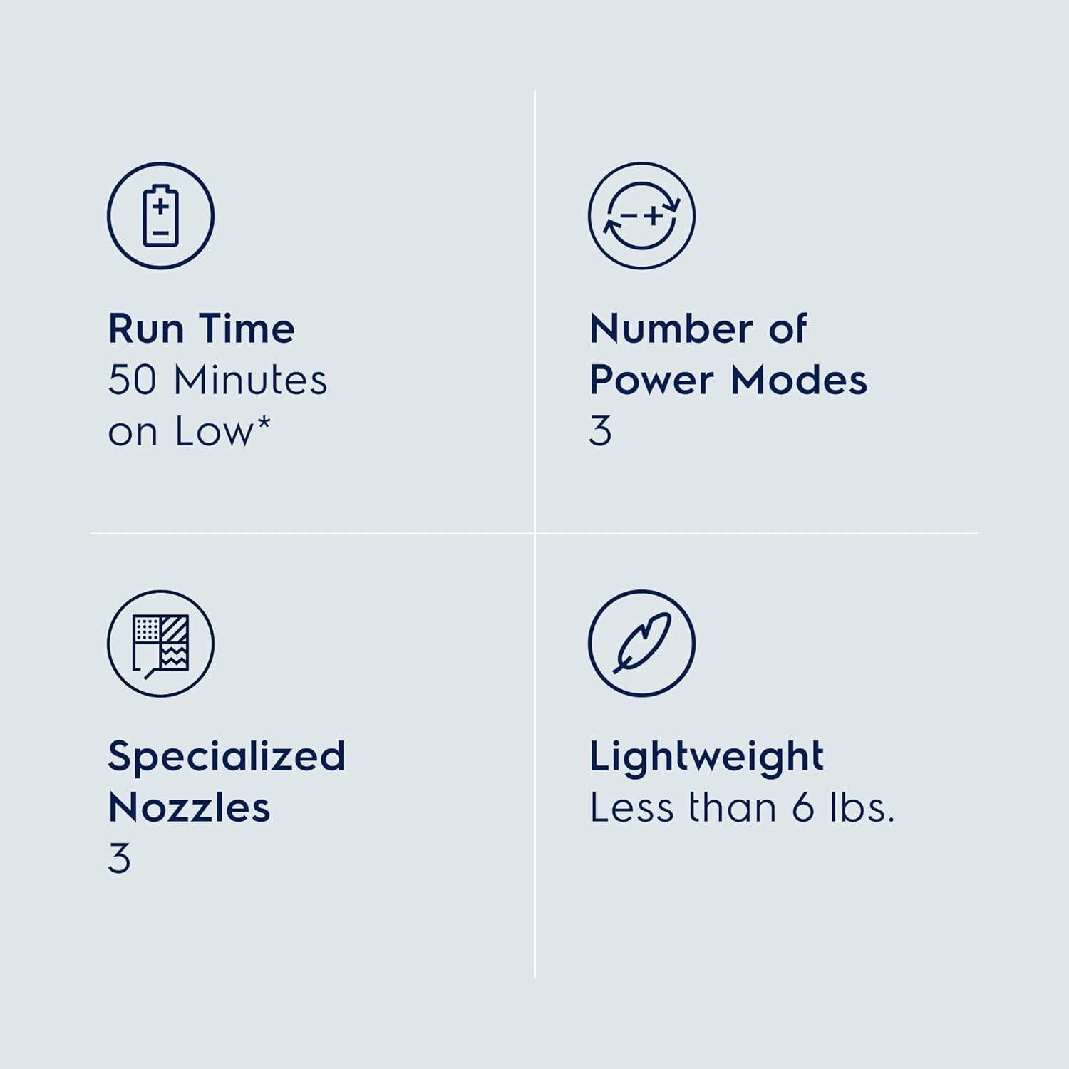 • Long-Lasting Cordless Power: Enjoy up to 50 minutes** of run time; Set your vacuum to Auto Mode, which automatically adapts the vacuum's suction power depending on the floor type, making it ideal for multi-surface cleaning and maximizing run time