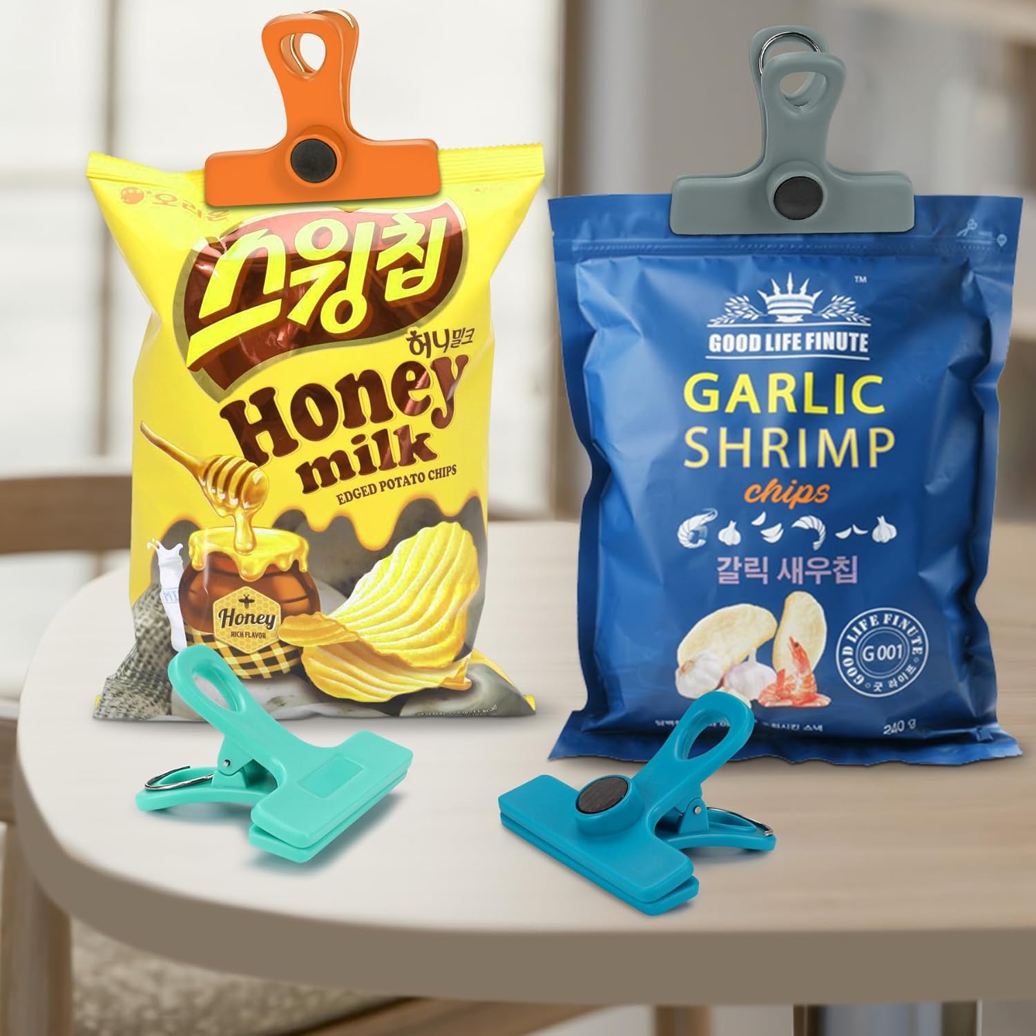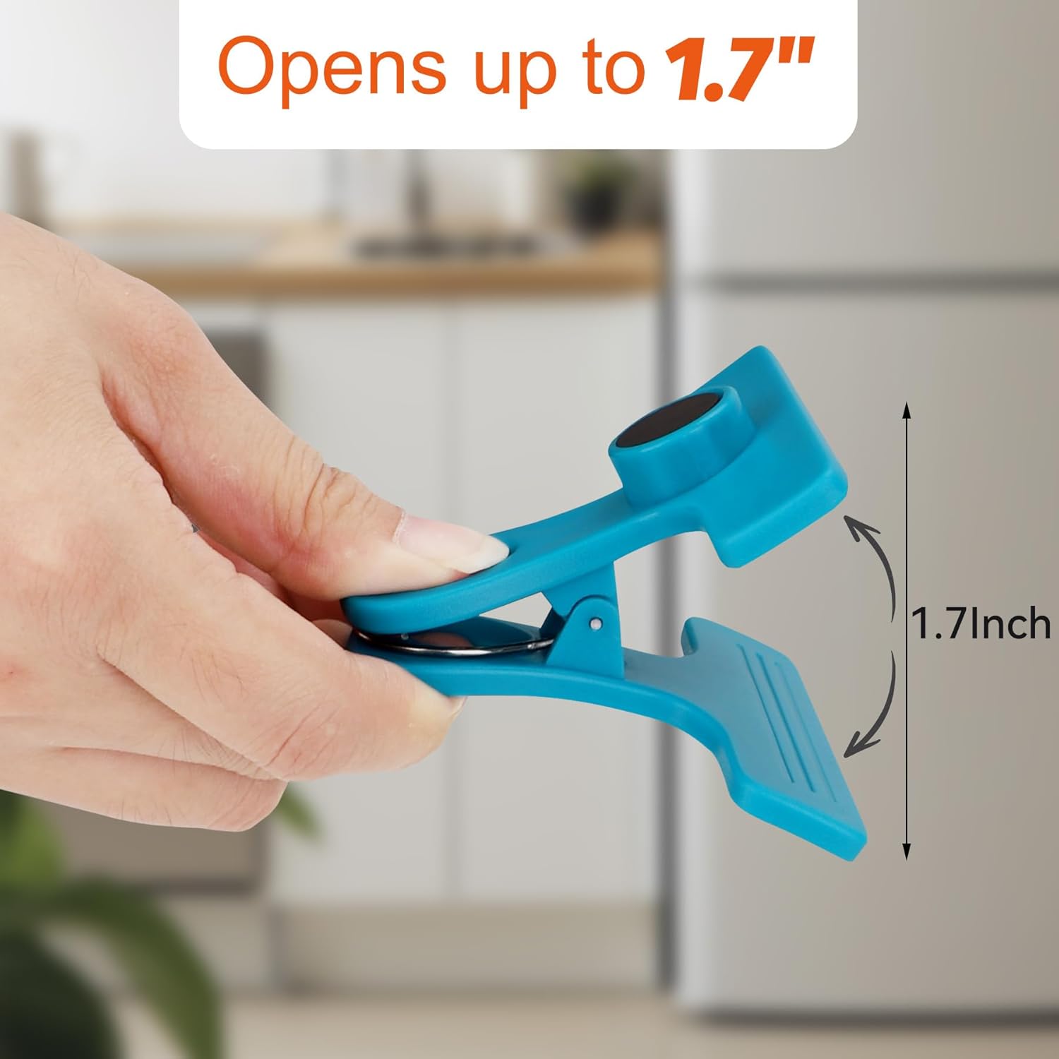 • 【Package Includes】8 pcs magnet bag clips (3.2" W x 2.6" L x 2" H) with 4 different colors – Blue, mint, orange, gray