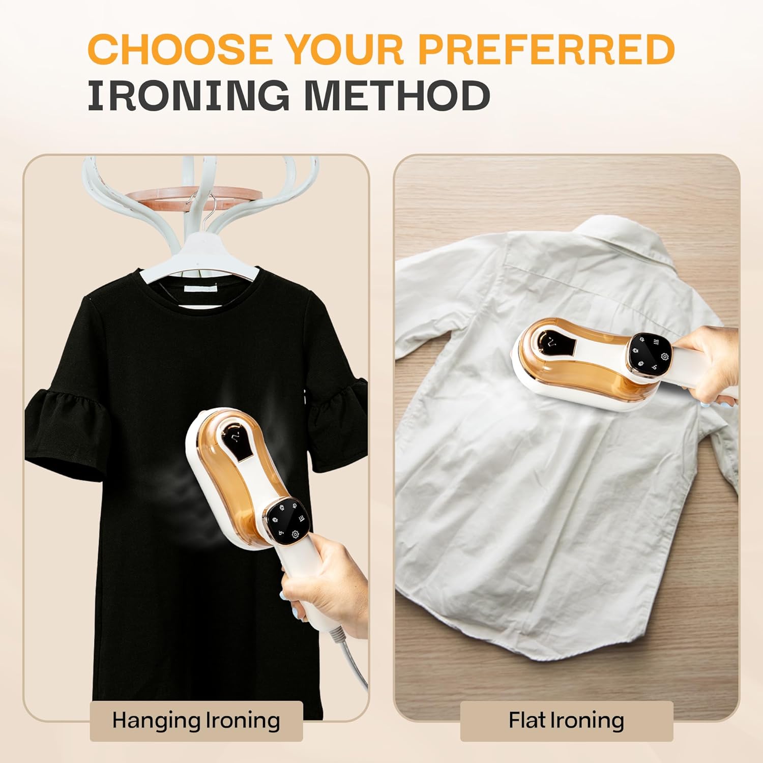 - 2-in-1 Handheld Steamer & Steam Iron – Works as a portable clothes steamer and wrinkle remover for garments, bedding, curtains, and upholstery, delivering professional steaming results anywhere you go.