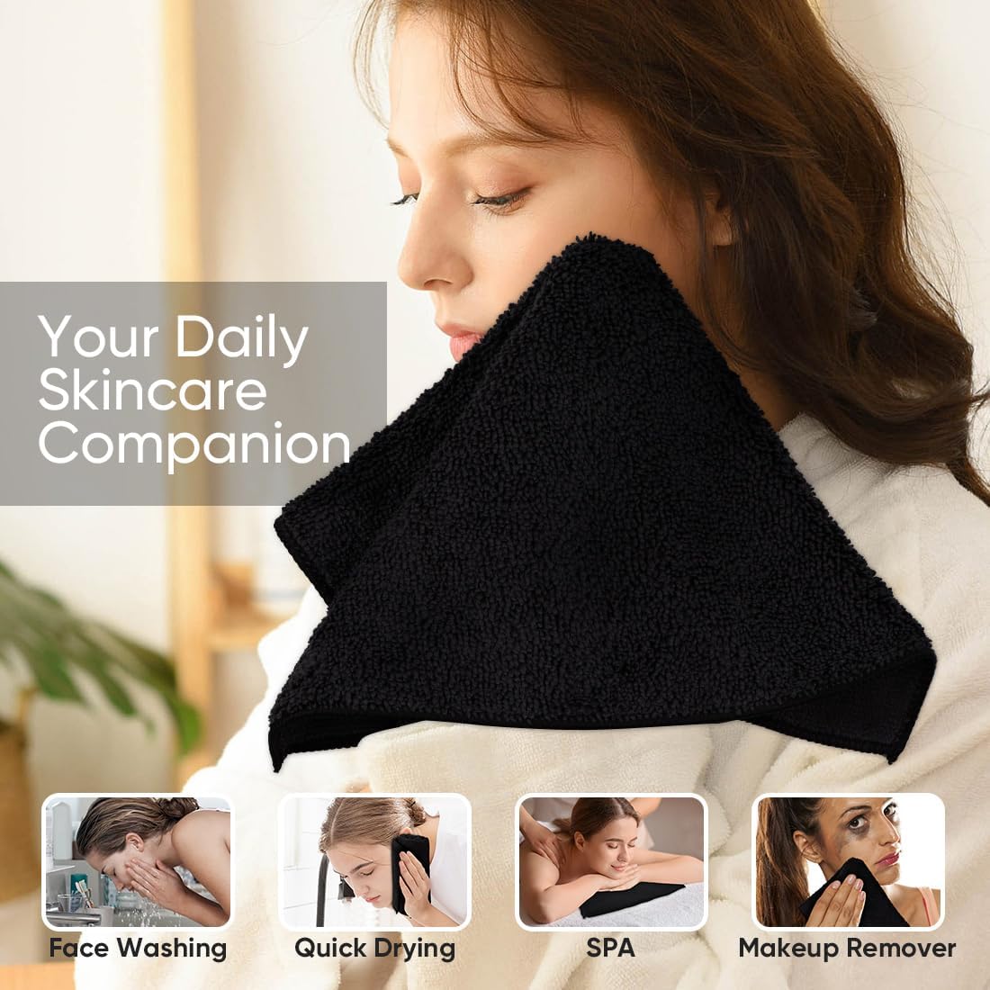 • Versatile Usage: Beyond its use as a washcloth or makeup remover cloth, this black towel serves multiple purposes around the house. Use it for dusting surfaces, cleaning spills, polishing glassware, and more.