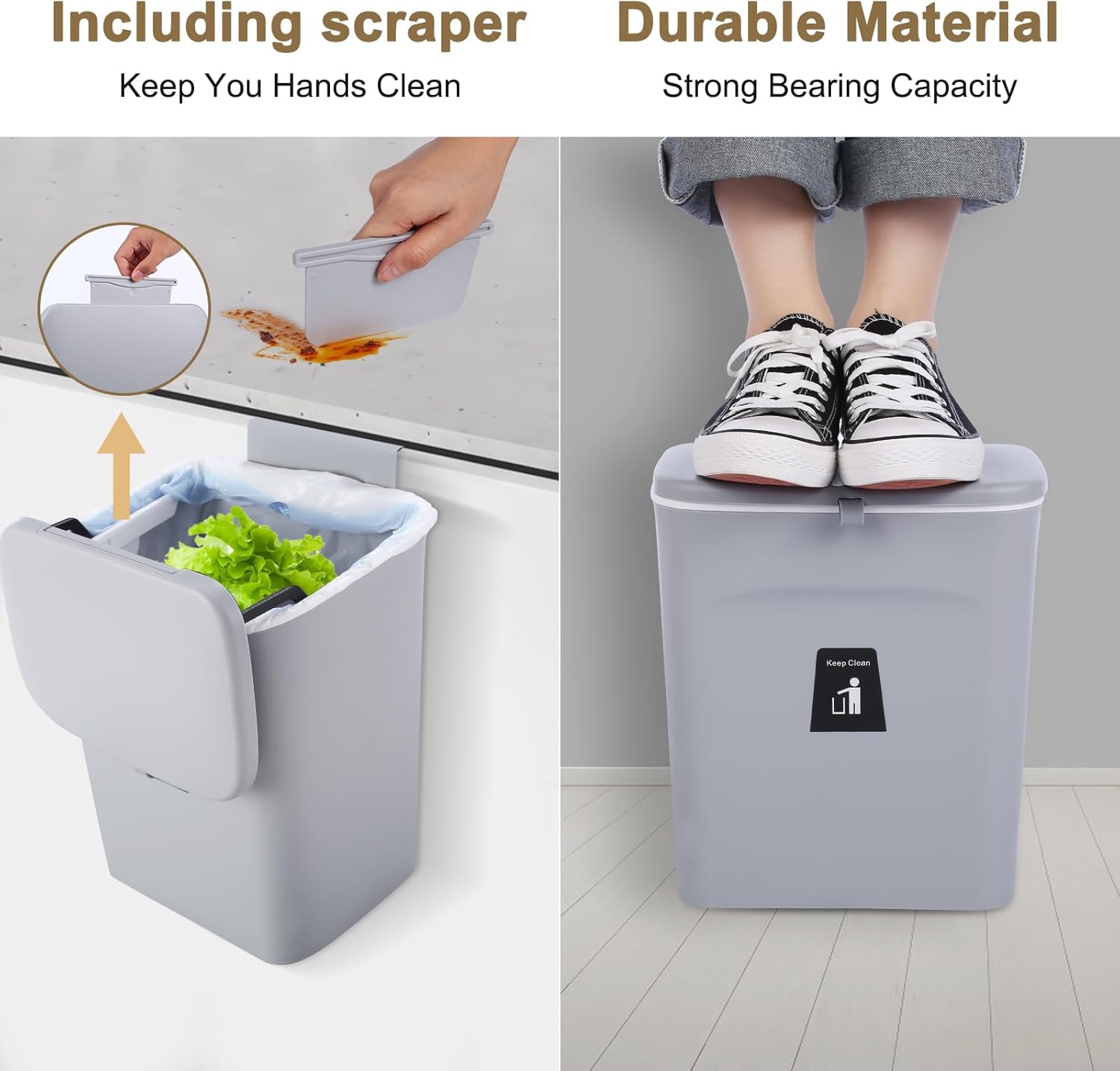 • 【Odor-Free Kitchen Waste Solution】Say goodbye to unpleasant smells!Odor-Blocking design helps keep your kitchen smelling fresh,and the lid ensures that waste and debris stay contained.With its hanging design,it's easy to keep this trash can off the floor and out of the way,freeing up valuable space in your kitchen