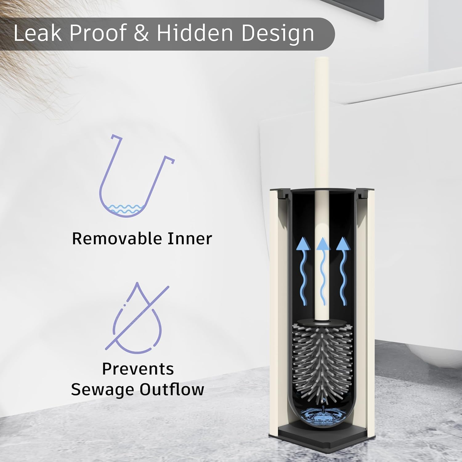 • Two Brush Heads -Including two brushes,one with ABS and the other one with silicon, can alternately use as you like. The protection cover can keep off the stains to splashing on your hands when cleaning the toilet.