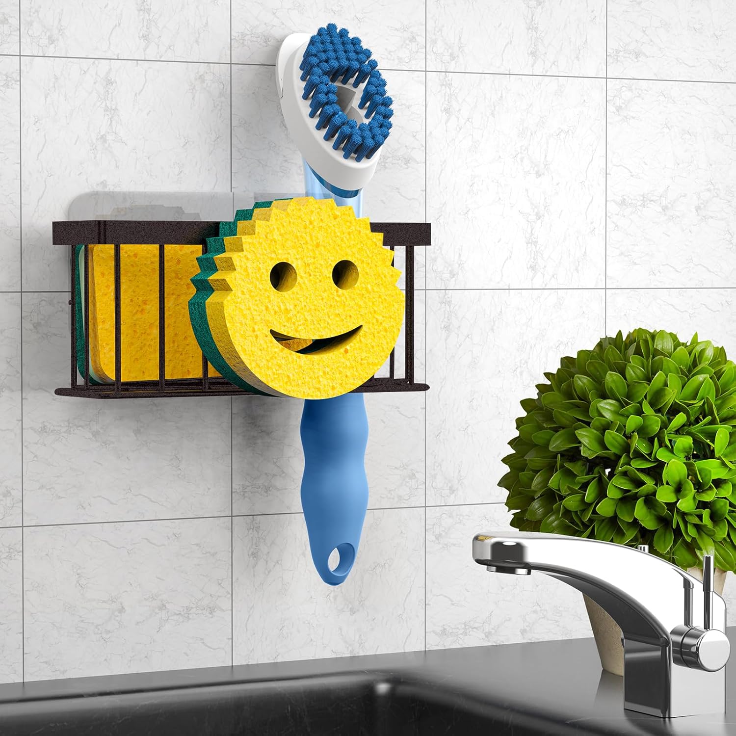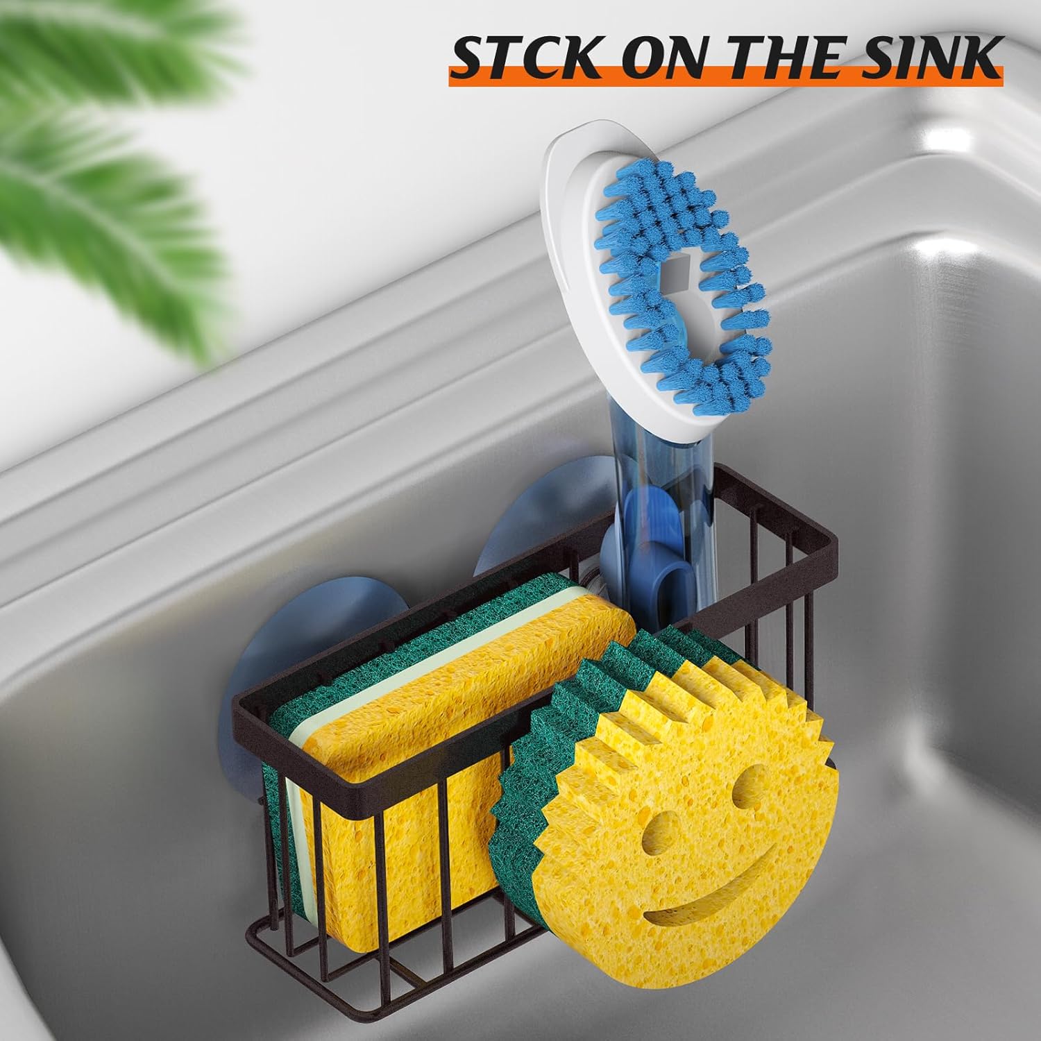 • UNIQUE EXTERIOR DESIGN: Compared to the original single-function version sponge holder, we specifically improved the style to increase space for holding the smiley face sponge and additional tools such as scrubber/dish brush/sink stopper etc