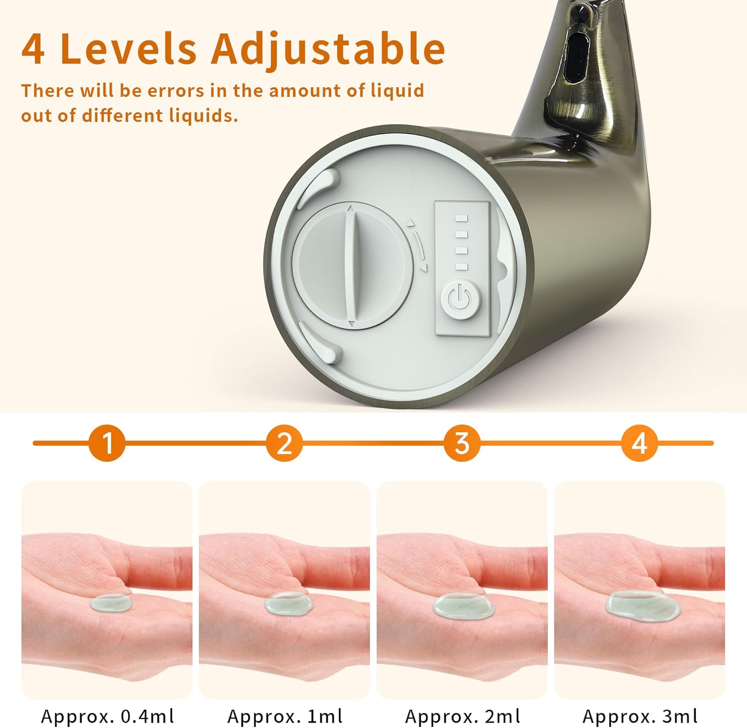 • 【Smart 4-Level Dispensing】This countertop soap dispenser offers 4 precision settings (0.4ml-3ml) - ideal for thick dish soap or light hand sanitizer. The kitchen dish soap dispenser helps reduce liquid waste while providing appropriate portions every time.