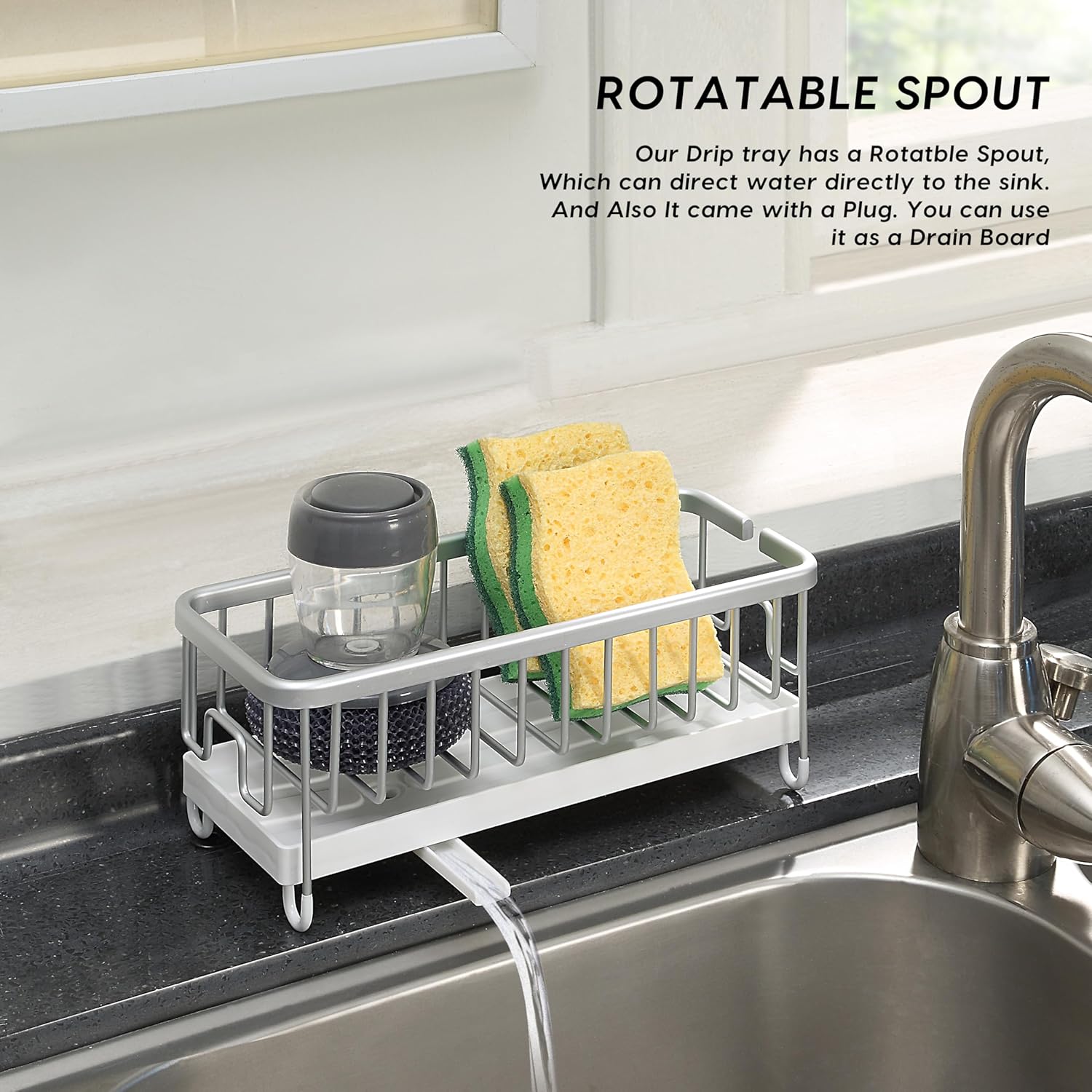 • Muti-Purpose: Our Drip tray has a Rotatble Spout, Which can direct water directly to the sink. And Also It came with a Plug. You can use it as a Drain Board