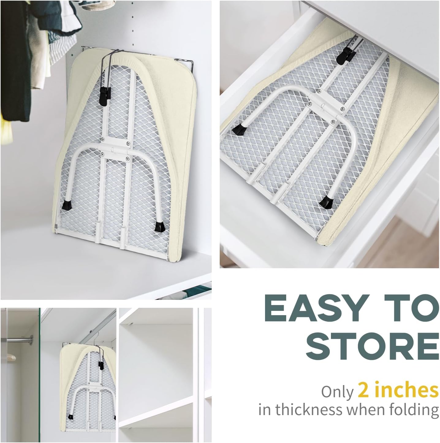 • Easy To Store: This foldable mini ironing board can be folded in half quickly for easy storage in cabinet, drawer or just hang it in the closet