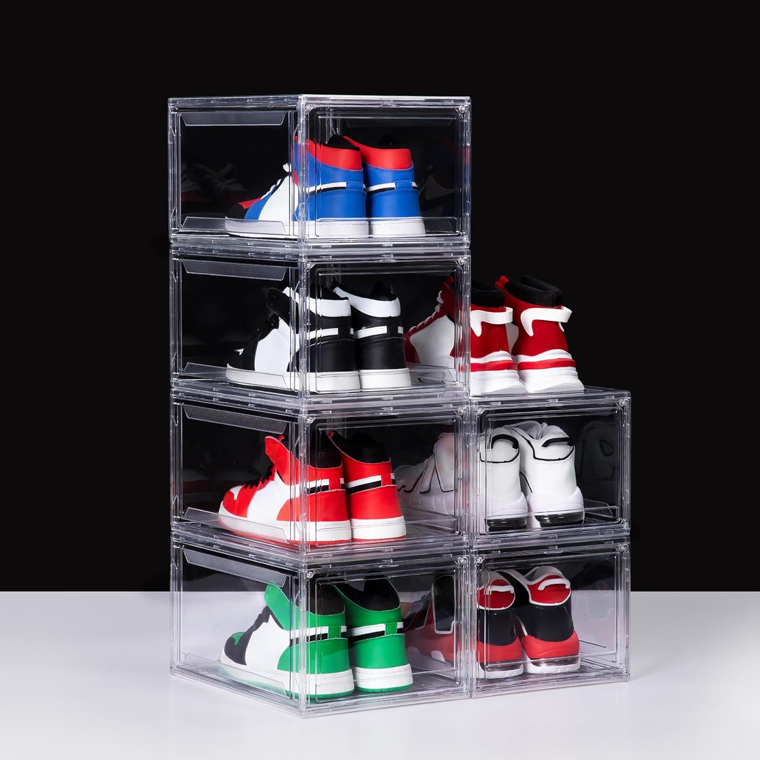 - Clear Acrylic Shoe Boxes: This Shoe Storage Box made from transparent acrylic allows a full view of your collection. Dustproof and waterproof, the shoe storage organizer features a front-opening magnetic door, making it easy to access and store your shoe boxes while keeping them protected.
