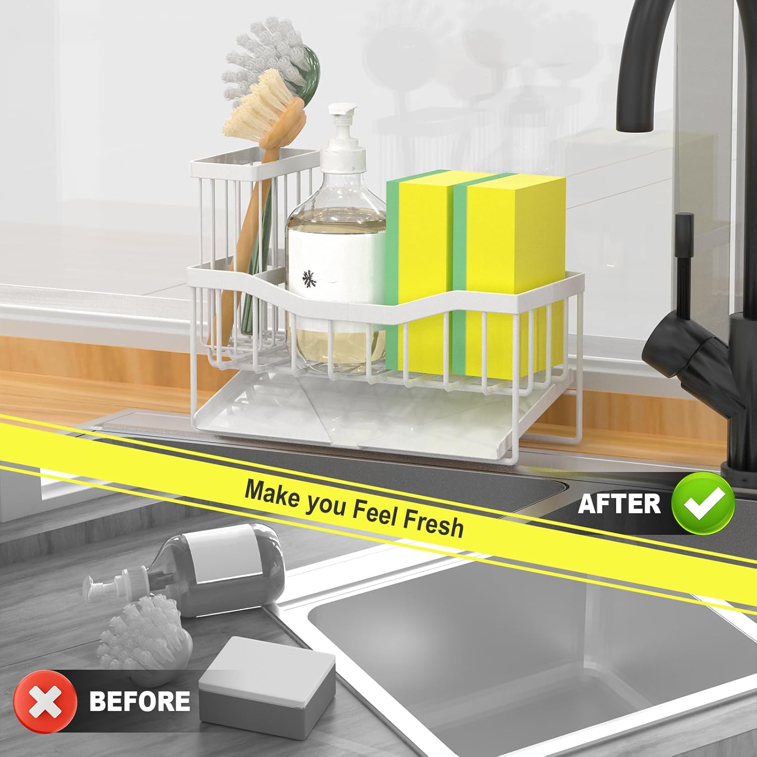 - 【Satisfactory Guaranteed】 Do Not Hesitate! Click ”Add To Cart” to Level Up Your Kitchen Organization! Kitchen sink caddies can be used as soon as they are received, do not require installation, and are widely used in bathrooms or counters, making them a desirable gift. If you have any questions during this process, please contact us in time and we will solve it for you in time.