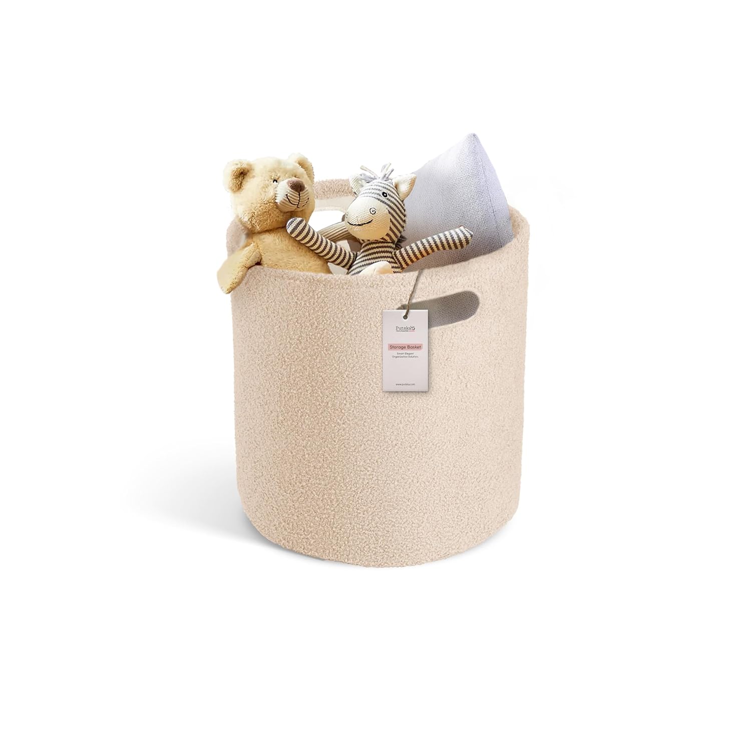 PUTSKA Basket – Round Storage for Clothes – Soft Baby Girl Basket for Nursery, Kids Room, Bedroom, Living Room – Large, Cream