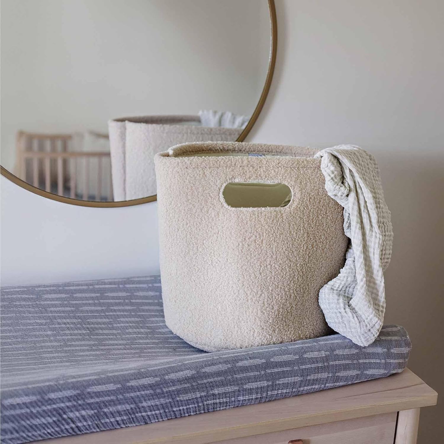 PUTSKA Basket – Round Storage for Toys and Clothes, Stuffed Animals – Soft Baby Girl Basket for Nursery, Kids Room, Bedroom, Living Room – Regular, Cream