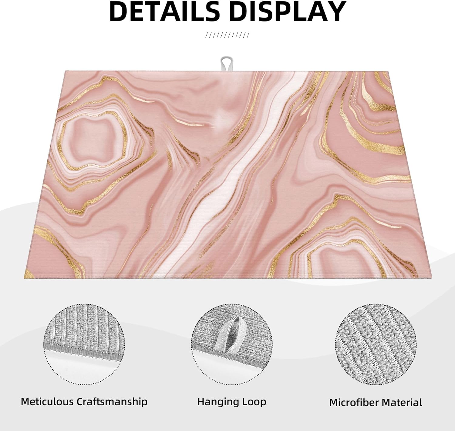 Pink Golden Dish Drying Mat for Kitchen Counter Absorbent Reversible Rose Pink Modern Drying Pad Dark Kitchen Decor Marble Dish Drainer Rack Mats 18"x24"