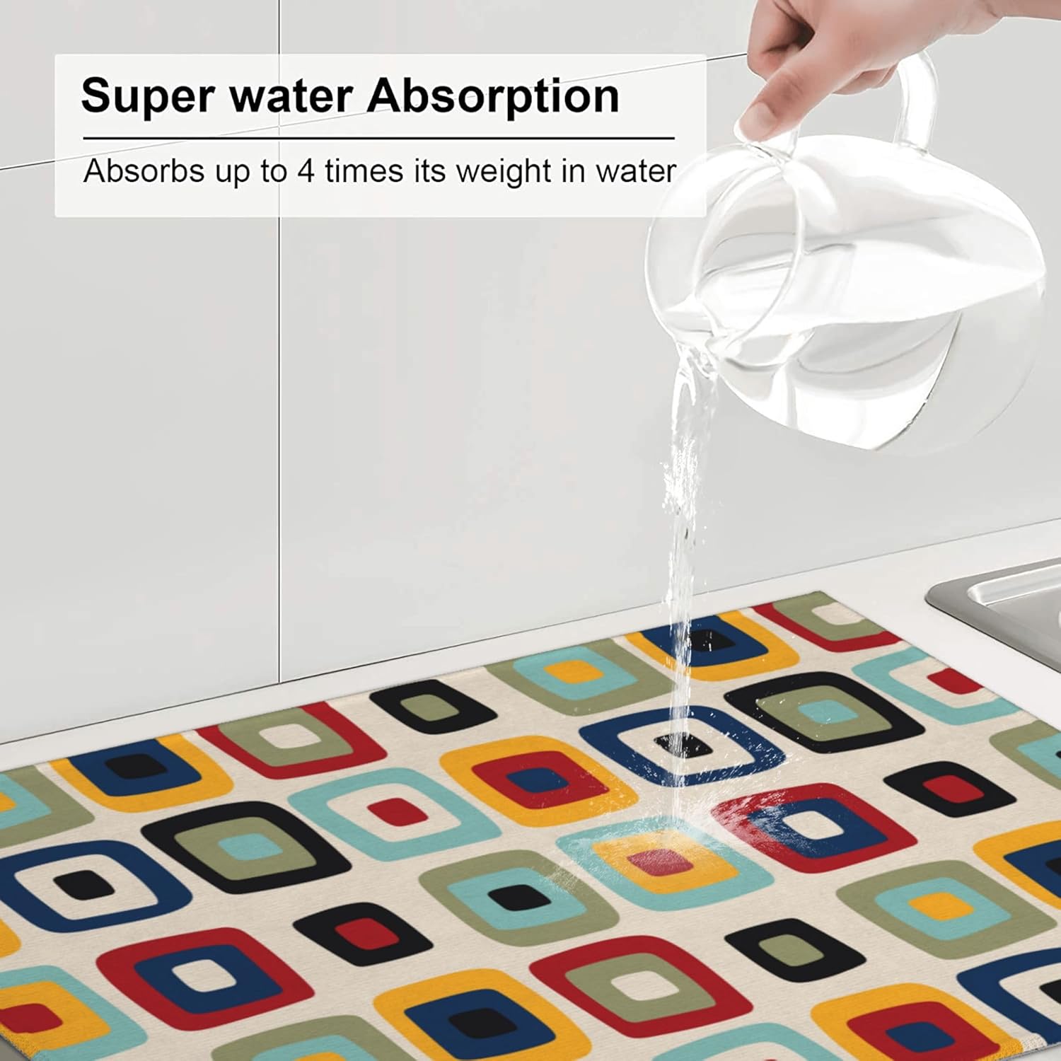 Mid Century Modern Retro Dish Drying Mat for Kitchen Counter Vintage Decorative Dish Drainer Rack Mats Washable Absorbent Reversible Microfiber Drying Pad Kitchen Accessories 18"x24"
