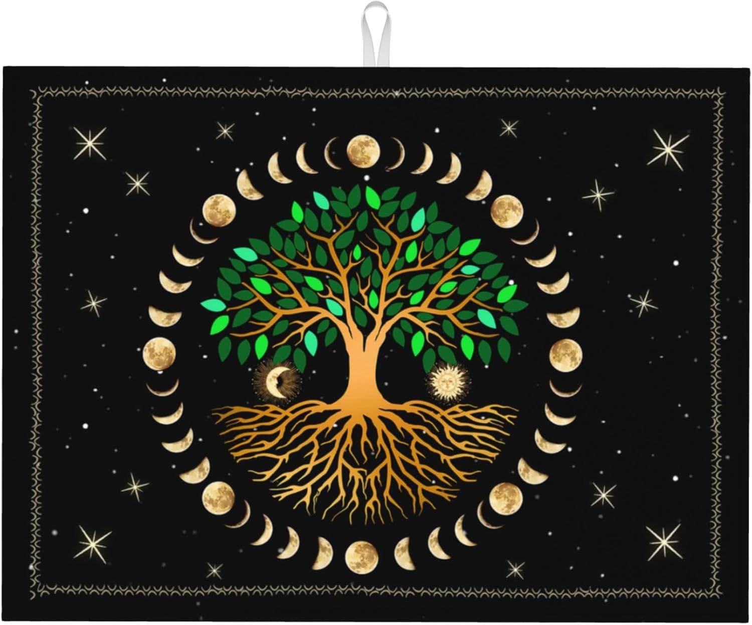 Black Microfiber Dish Drying Mat for Kitchen Counter 18"x24" Ancient Life Tree Decorative Dishes Pad Dish Drainer Rack Mats Absorbent Washable Reusable Moon Luna Hippy Decor