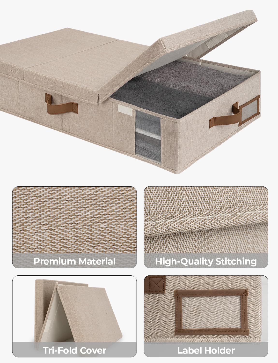 - Foldable: This underbed organizer's top can be divided into three sections, allowing for convenient access to the contents from both sides. When not in use, these storage boxes are also effortlessly foldable and storeable.