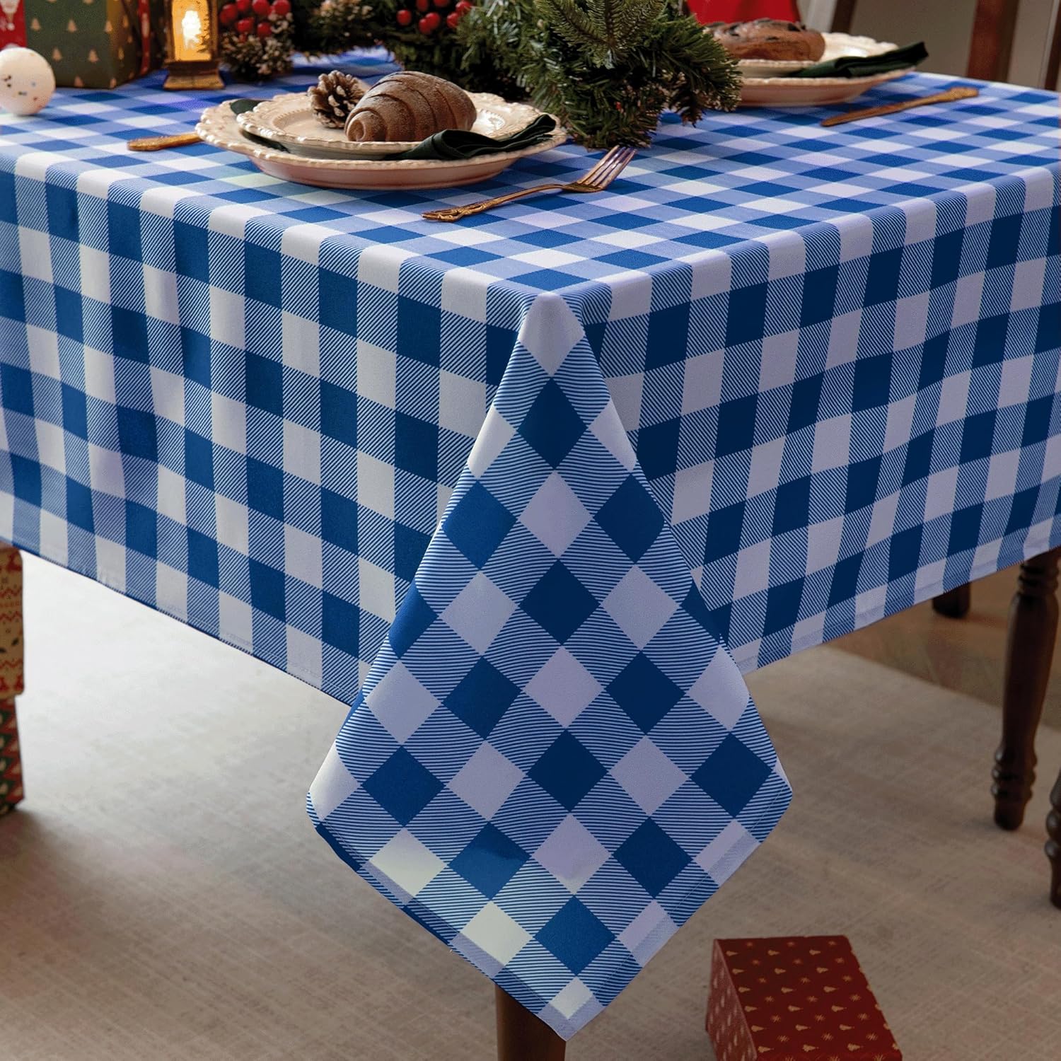 Classic Gingham Plaid Tablecloth Fabric - Rectangular 58x102 Inch Water Resistant Checked Table Cloth for Indoor/Outdoor Use - Table Cover for Kitchen, Picnics, Gardens, and Parties