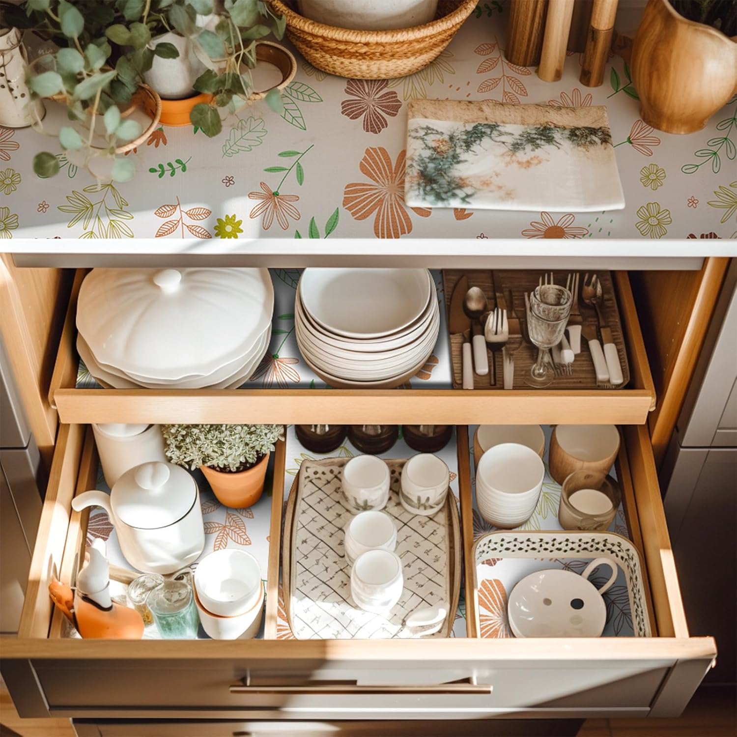 • SHELF LINER: Unique drawer liner design makes you stand out from the crowd of drawer liners. Made from premium thickened material, these non-adhesive shelf anddrawer liners are durable, tear-resistant, and reusable.