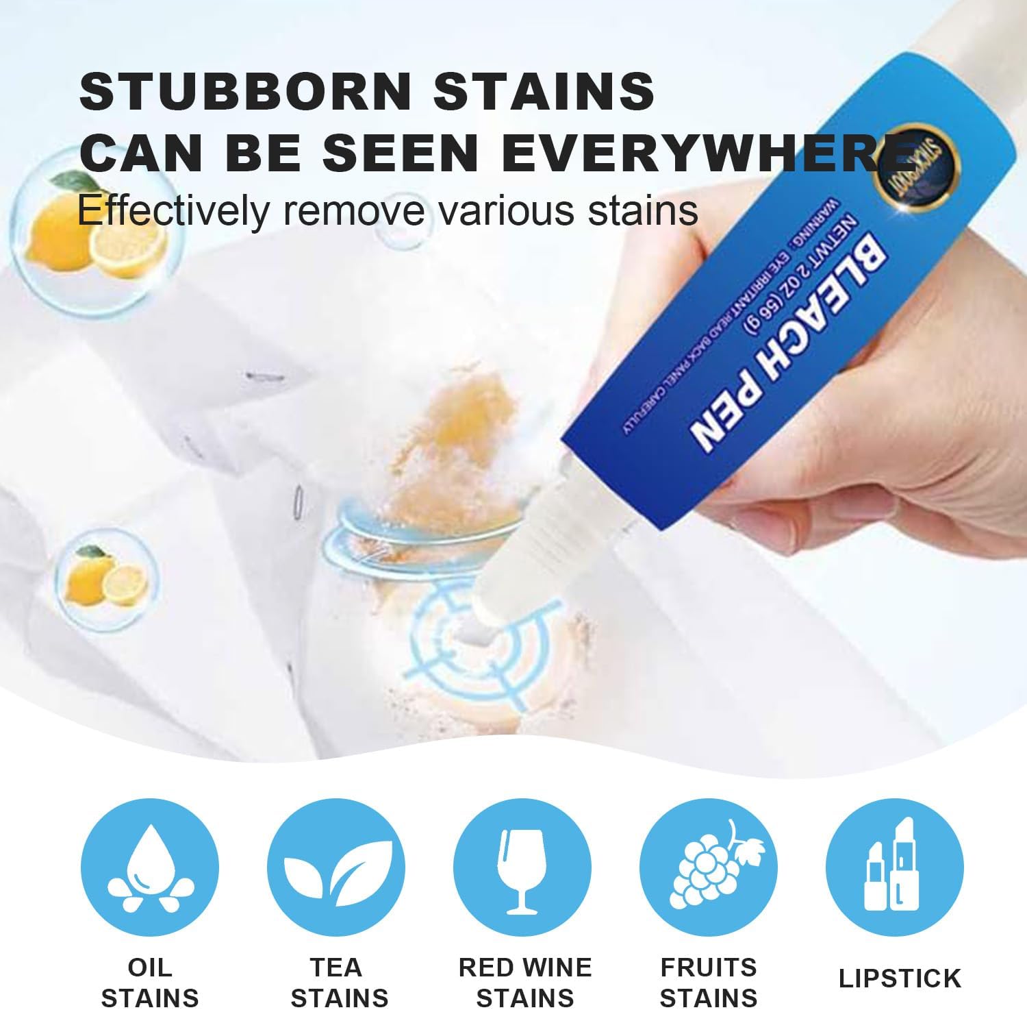 • Bleach Pen Gel -- Stain Removing Pen Bleach for Clothing, Effectively remove all kinds of stains It can be used for food stains, cosmetic stains, beverages (coffee, tea, wine, milk, cola, etc.), ketchup, oil stains, etc.