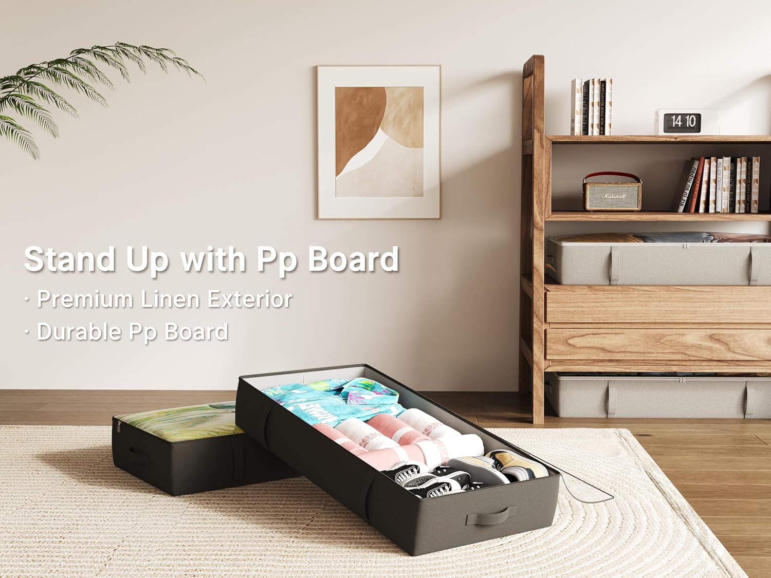 • High Quality Materials - Made of sturdy composite Linen fabric, the storage bins under the bed can hold bulky books and toys without falling apart. Durable handles and dual zippers make it easy to use in daily life. Transparent top cover helps find the items quckly