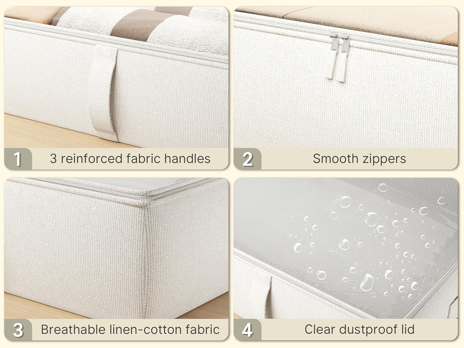 • High Quality Materials - Made of sturdy composite Linen fabric, the storage bins under the bed can hold bulky books and toys without falling apart. Durable handles and dual zippers make it easy to use in daily life. Transparent top cover helps find the items quckly