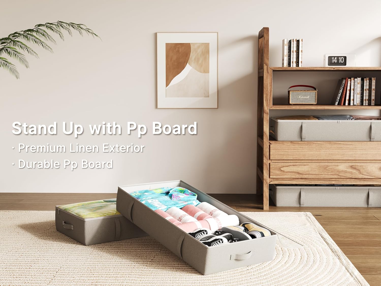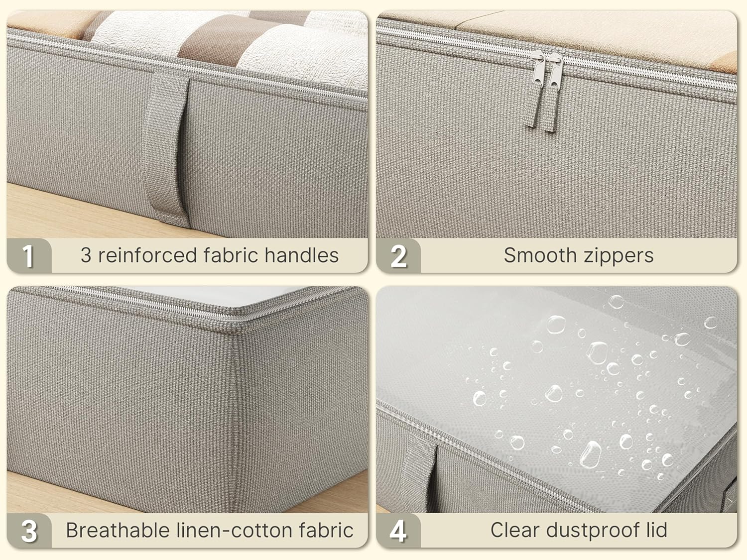 • High Quality Materials - Made of sturdy composite Linen fabric, the storage bins under the bed can hold bulky books and toys without falling apart. Durable handles and dual zippers make it easy to use in daily life. Transparent top cover helps find the items quckly