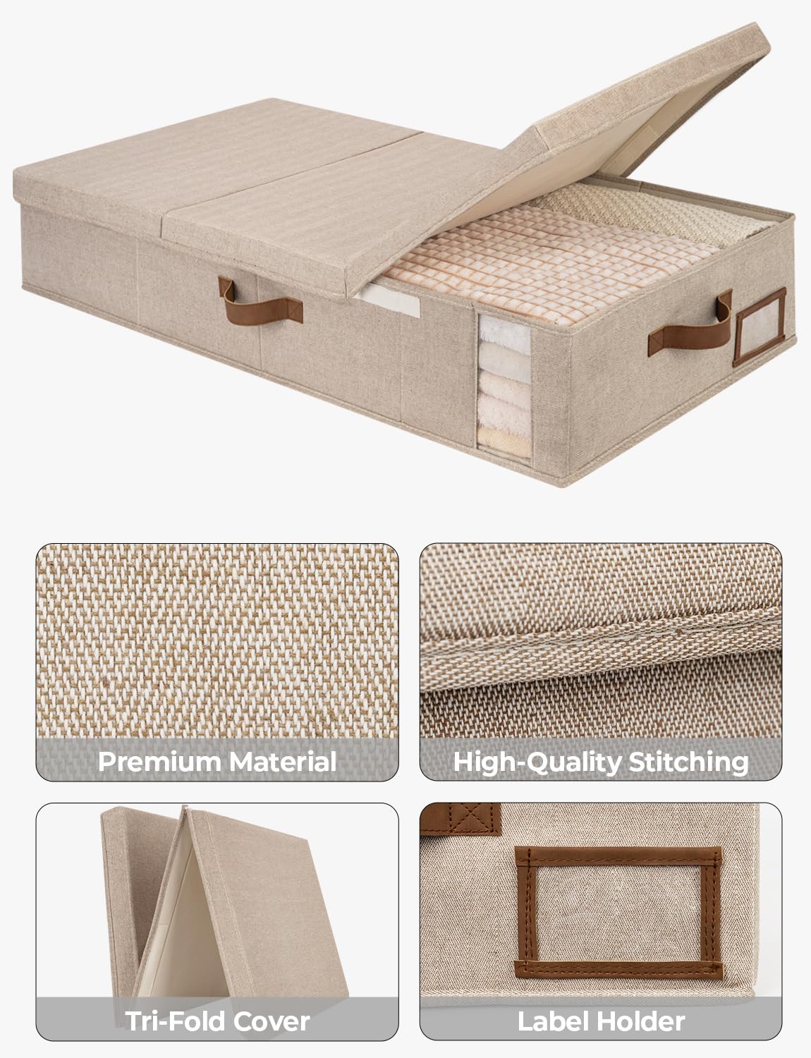 • Foldable: The lid of this underbed organizer can be folded into 3 parts, so the contents can be accessed from both sides for convenience. These storage boxes can also be folded and stored easily when not in use.