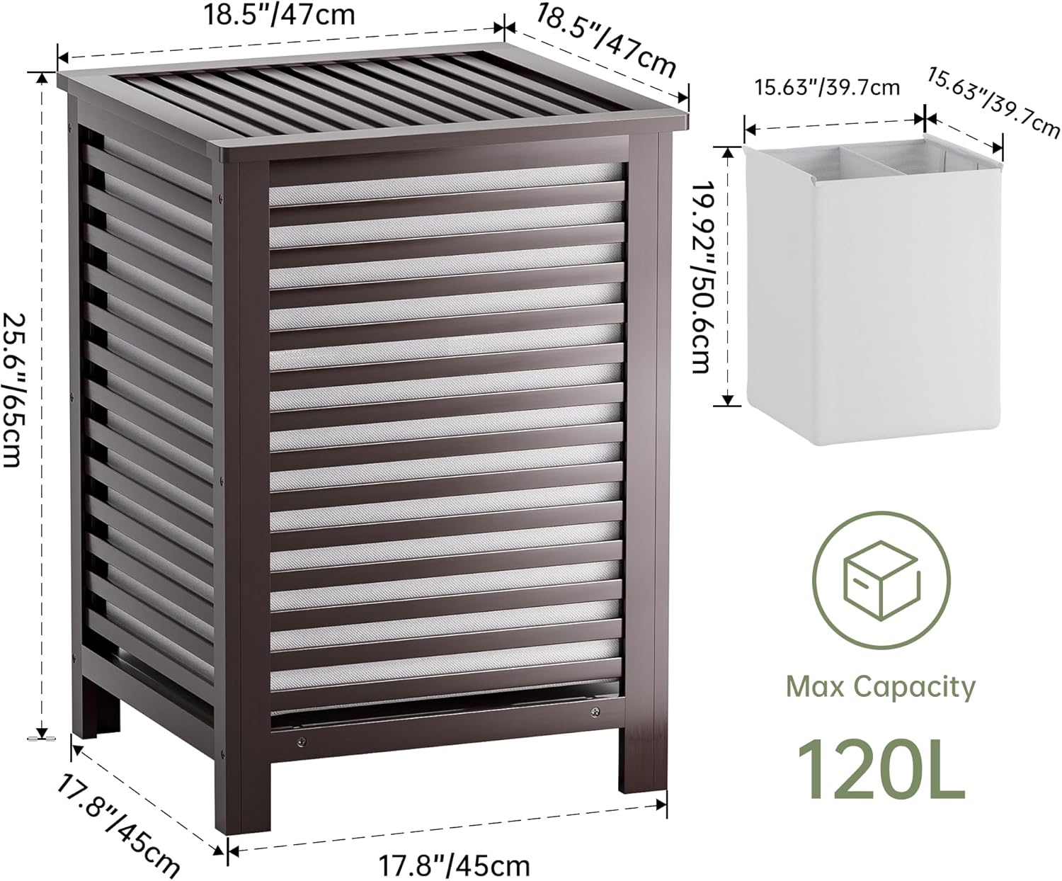 - ★ LARGE CAPACITY YET SPACE SAVING: This spacious double washing hamper measures 18. 5''L x 18. 5''W x 25. 6''H (47 x 47 x 65 cm), up to 120L, roomy enough to hold lots of clothes, towels, toys, etc. Boasting a narrow vertical design for space efficient storage in your bedrooms, bathroom, dorm