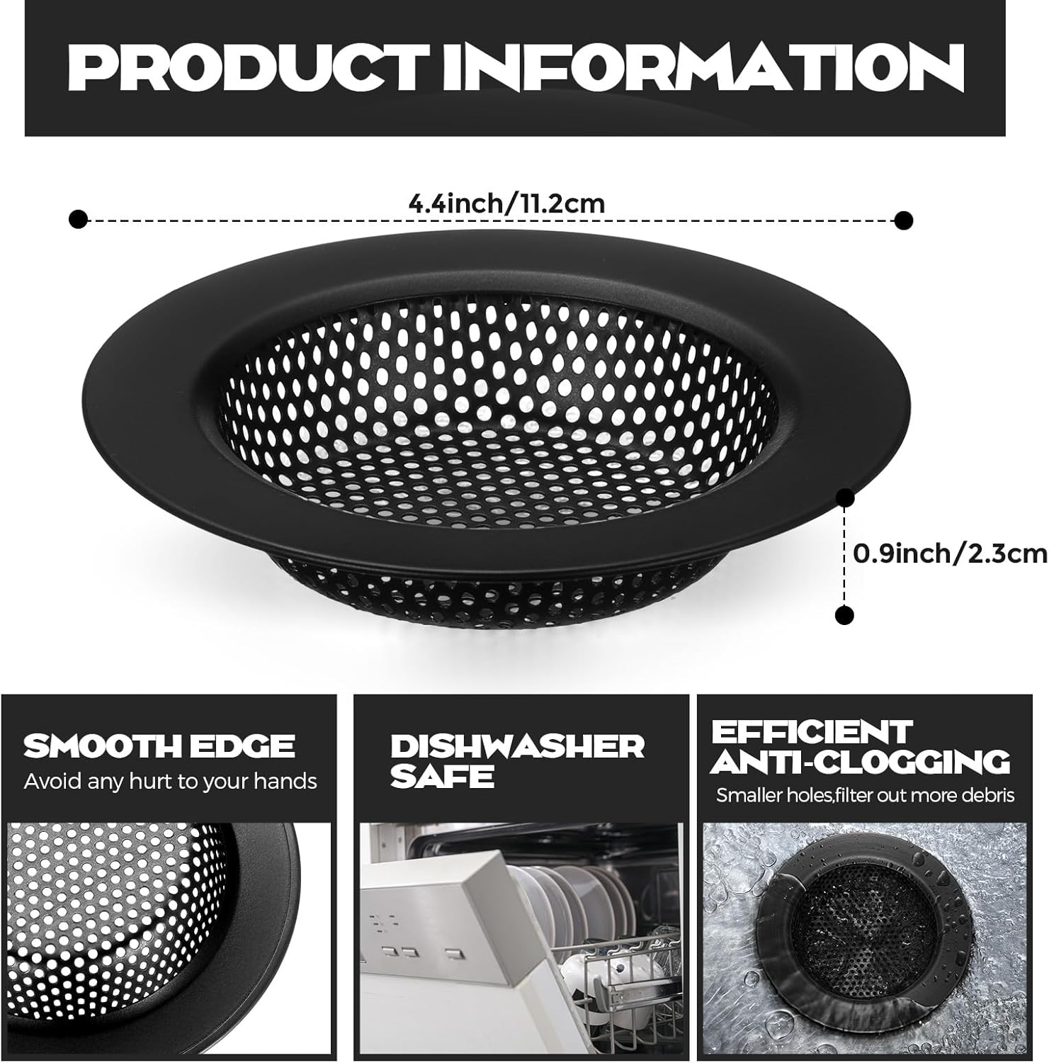 Retisee 2 Pcs Sink Strainer Stainless Steel Kitchen Sink Drain Strainer Basket Cover Mesh Hair Food Catcher, Large Wide Rim of 4.4 Diameter(Matte Black)