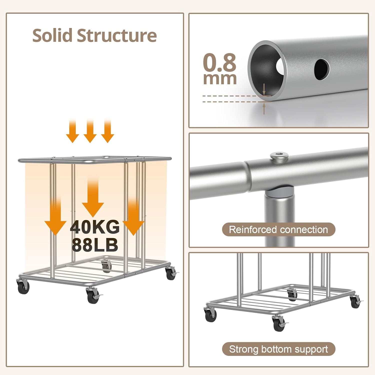 • [Sturdy & Stable Structure] made of a thickened metal poles, with a rust-resistant surface, this heavy-duty laundry hamper with wheels boasts a strong and stable structure that can support up to 88 lb.