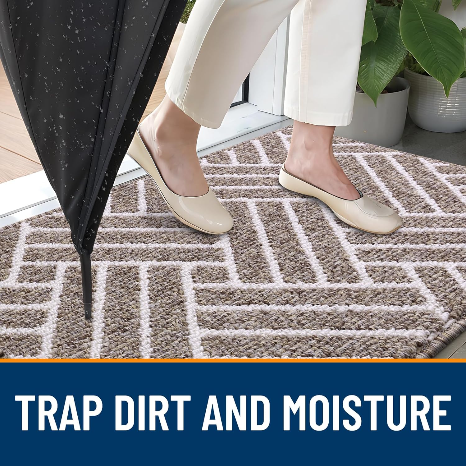 • [LOW-PROFILE DESIGN]: With a sleek geometric pattern, this mat adds a modern touch to your home. Its low-profile design ensures it fits smoothly under your door without obstructing movement, making it the ideal doormat to elevate your home's aesthetic.