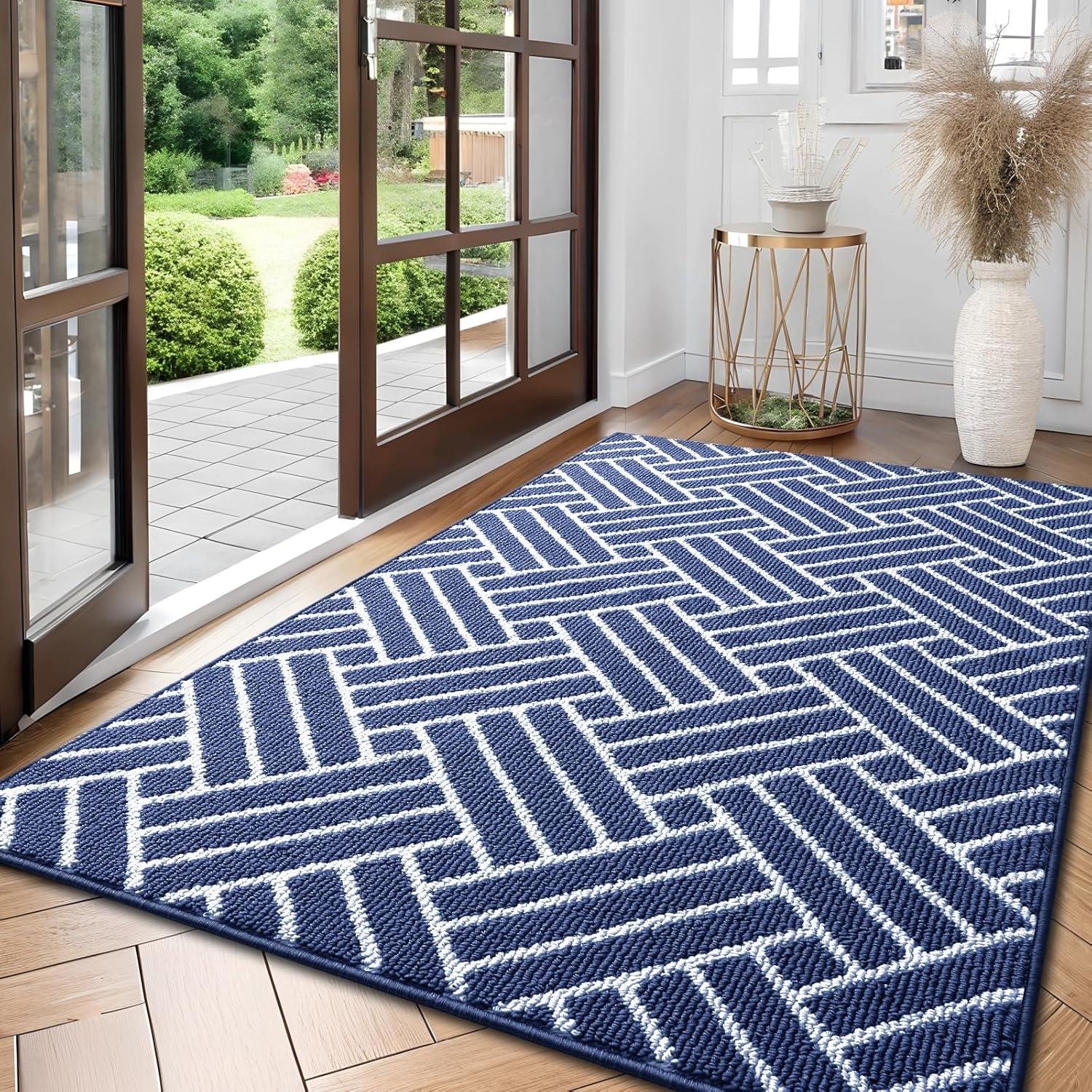 OLANLY Large Indoor Door Mat, 59x35 Inch, Dirt Resistant and Absorbent, Non-Slip Rubber Backing Floor Mats, Easy Clean Low-Profile Doormat for Entryway, Front Door, and Inside Entrance, Navy