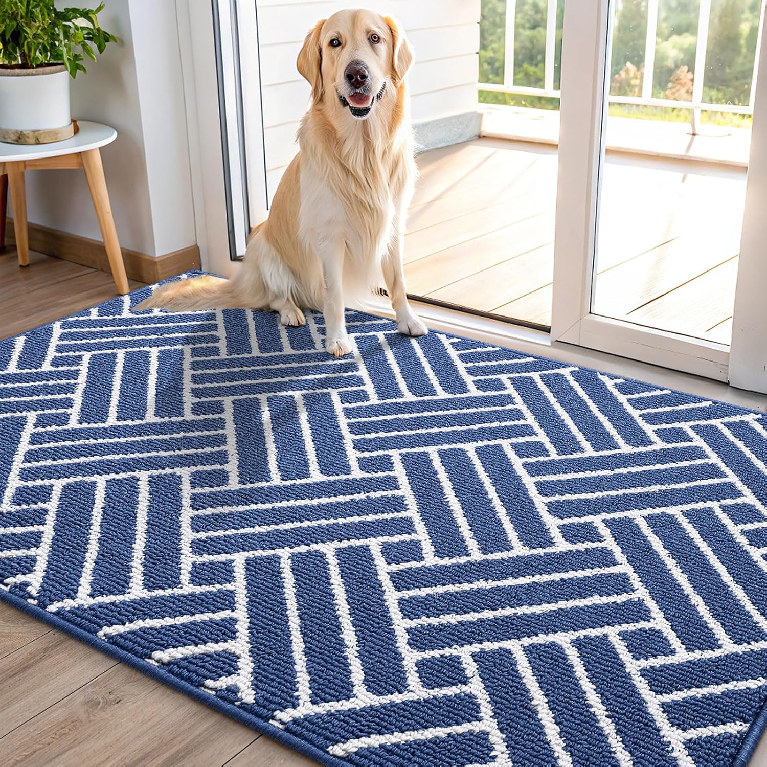 OLANLY Indoor Door Mat, 48x32 Inch, Dirt Resistant and Absorbent, Non-Slip Rubber Backing Floor Mats, Easy Clean Low-Profile Doormat for Entryway, Front Door, and Inside Entrance, Navy