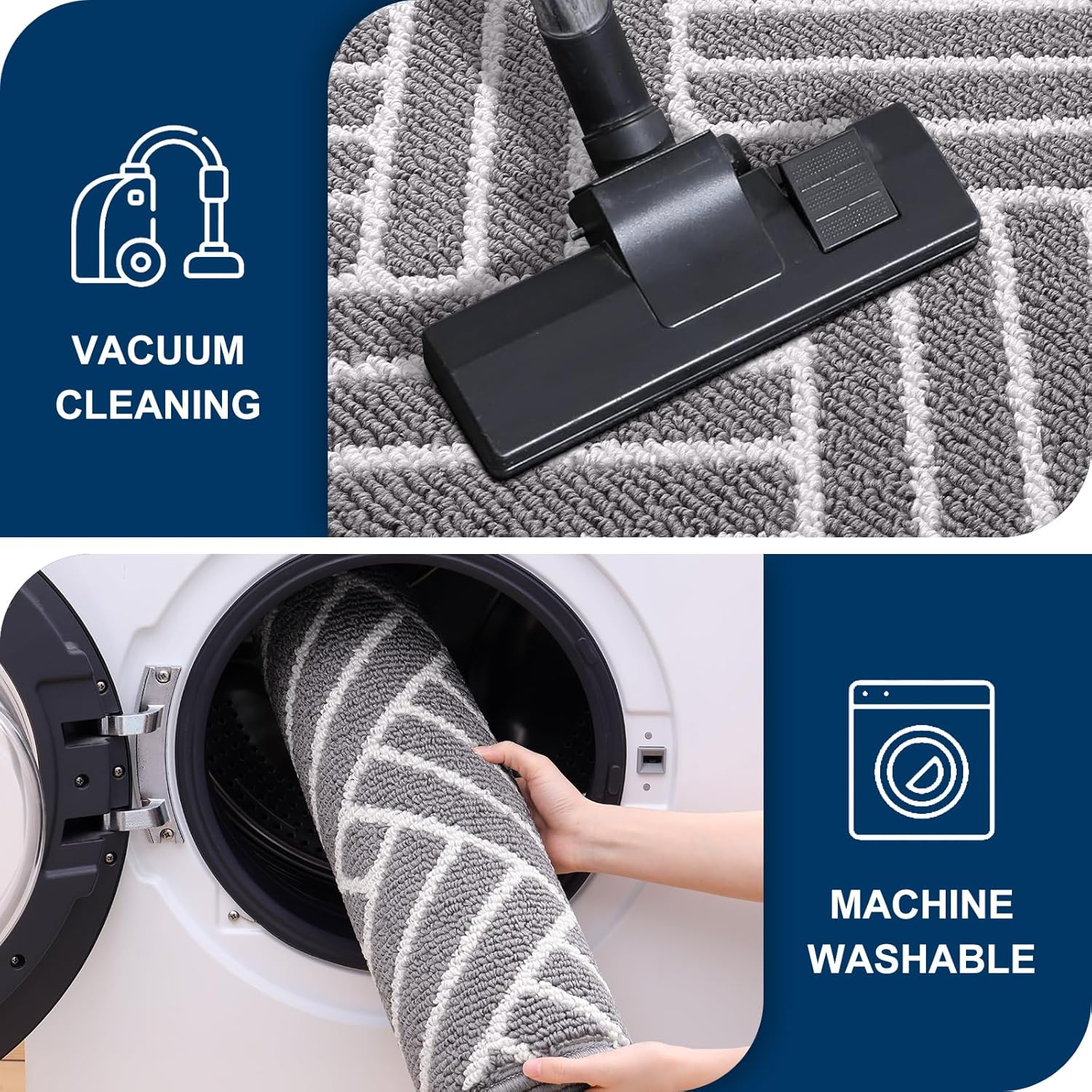 • [EASY CLEANING AND MAINTENANCE]: Cleaning the indoor entrance mat is simple and hassle-free. Easily shake off dirt, or use a broom or vacuum for regular cleaning. For a deeper clean, simply rinse it with a hose or machine wash with cold water.