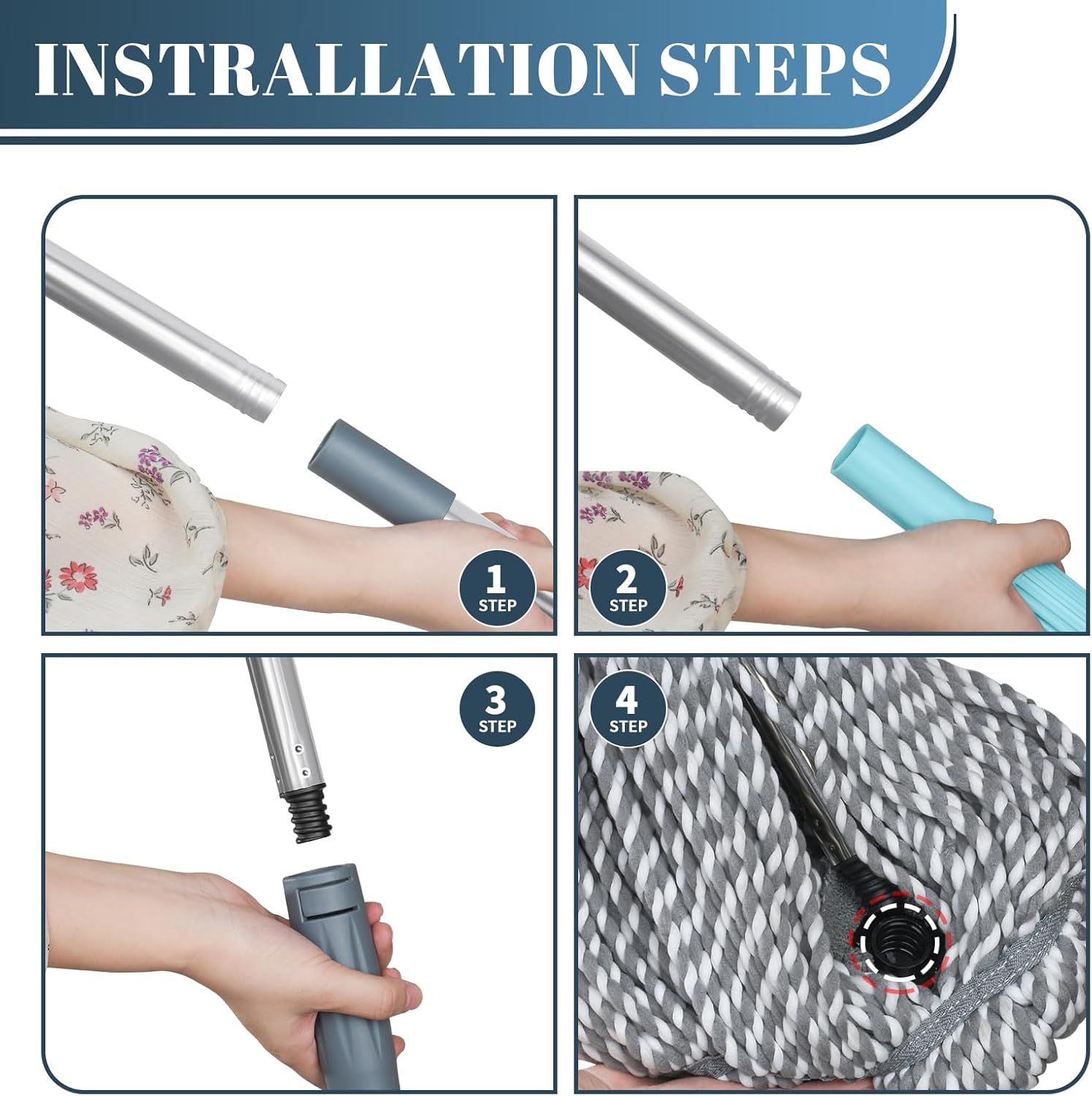 • Longer Handle Twist Mop: Mops for floor cleaning heavy duty is 64" long, longer than regular mops, no need to bend over. Soft and comfortable foam handle, more comfortable to hold. loop on end of handle makes it easy to hang