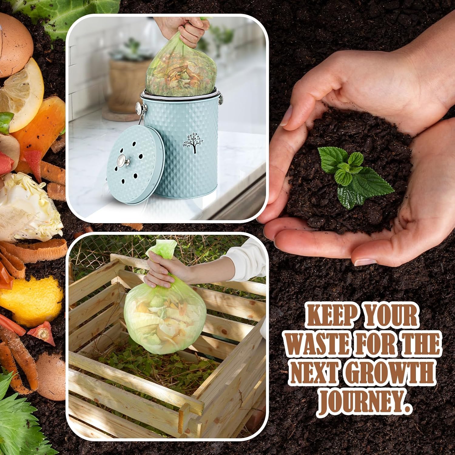 • 【ENVIRONMENTALLY FRIENDLY COMPOSTING】:The compost bin is the perfect odorless storage container for organic kitchen waste in your home.It will complement any kitchen decor.Put kitchen waste into outdoor organic fertilizer for composting and reuse. Not only does it make a stylish decoration, but it’s also functional and great for a greener environment.