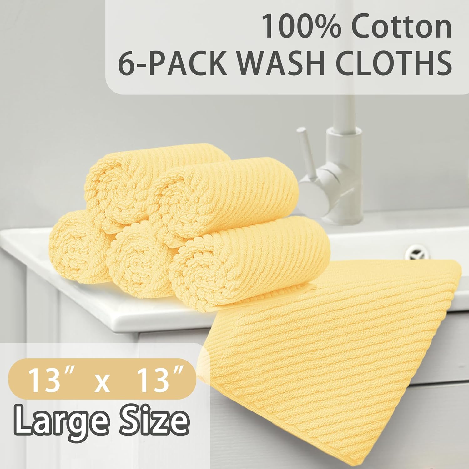VOOVA & MOVAS Washcloths 6 Pack, 13"x13" - 100% Cotton | Lightweight | Thick | Quick Dry | Soft | Absorbent, Fluffy Hand Towels, Hotel Wash Cloths for Bathroom, Towel Gift Set, Yellow
