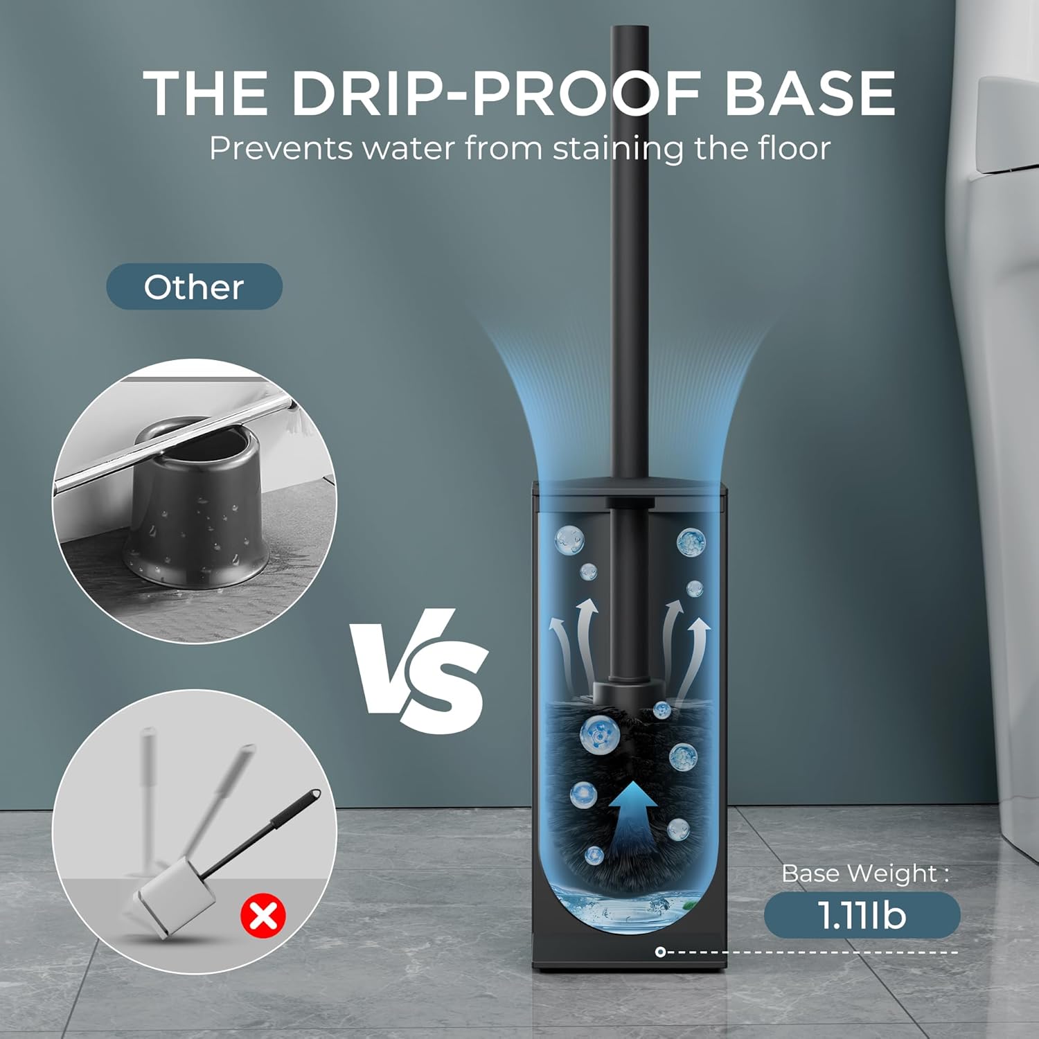 • High-Quality Durability: FORIOUS black toilet brush and holder set features a robust 304 stainless steel base that guarantees long-lasting performance and resistance to rust and corrosion, making it an ideal toilet bowl brush for your bathroom