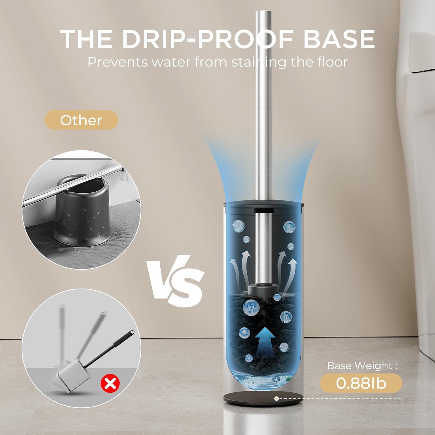 • High-Quality Durability: FORIOUS Toilet Brush and Holder Set features a robust 304 stainless steel base that guarantees long-lasting performance and resistance to rust and corrosion, making it an ideal toilet bowl brush for your bathroom