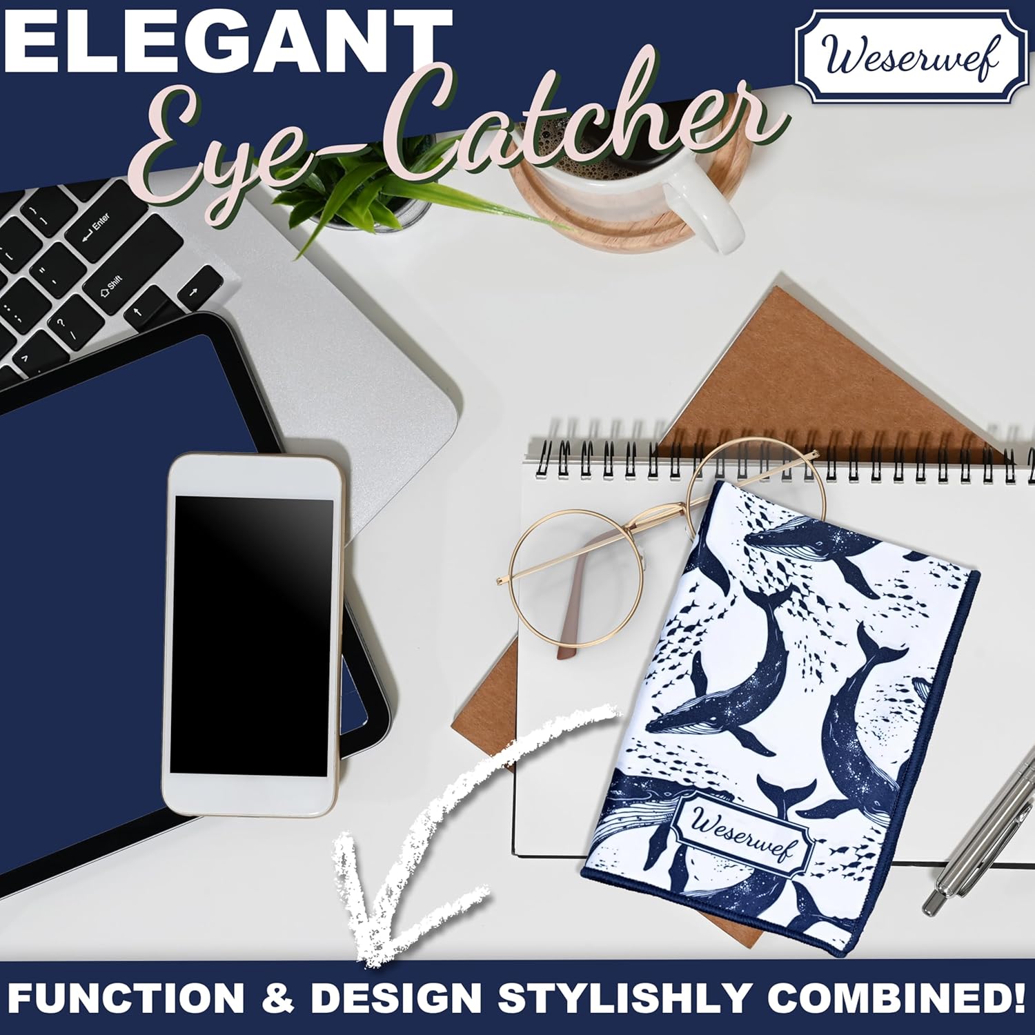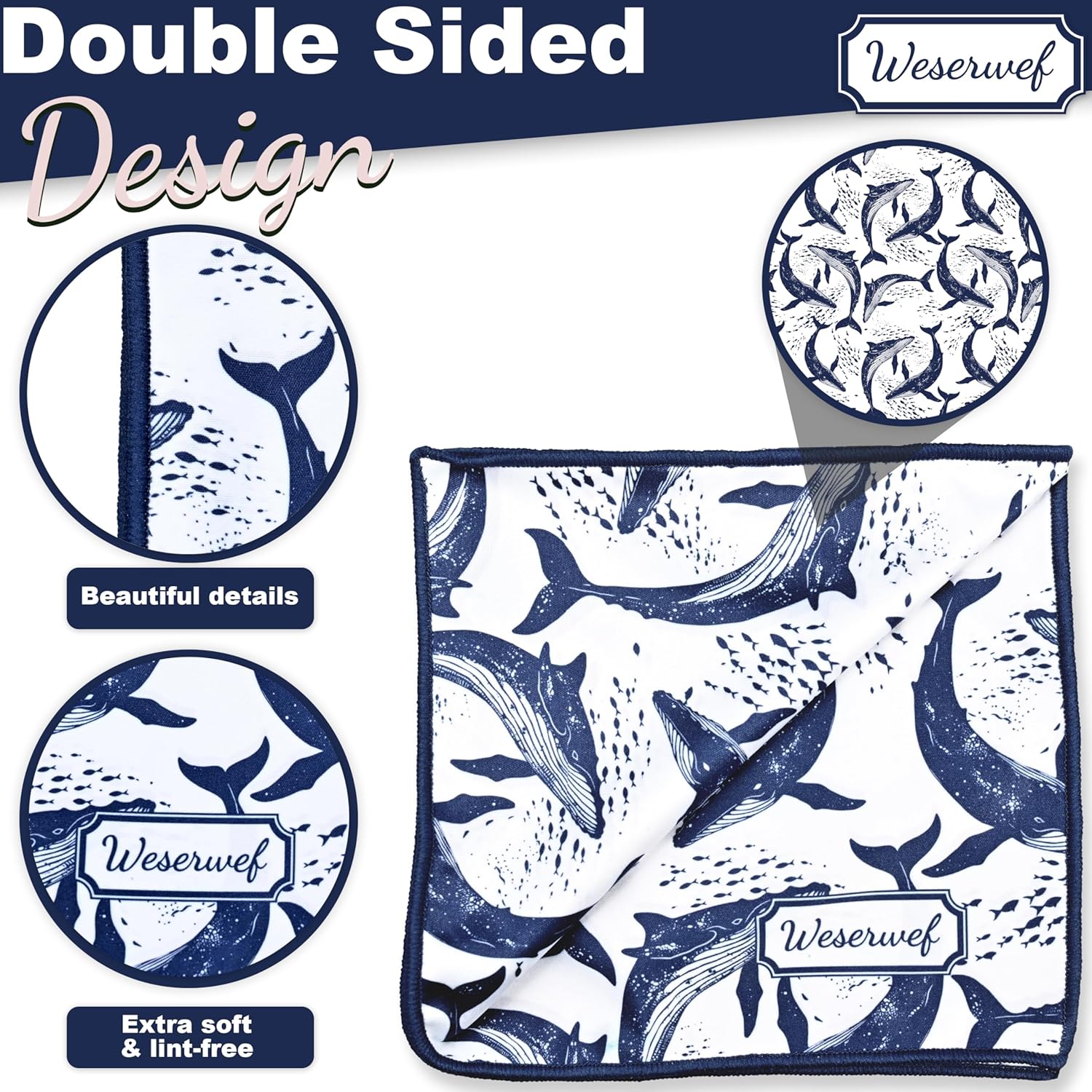 WESERWEF Design Microfiber Glasses Cleaning Cloth – Premium Cleaning Cloth for Eyeglasses, Screens, Tablets, Cameras & Lenses, 12" x 12", Ultra-Soft & Scratch-Free (Whales)