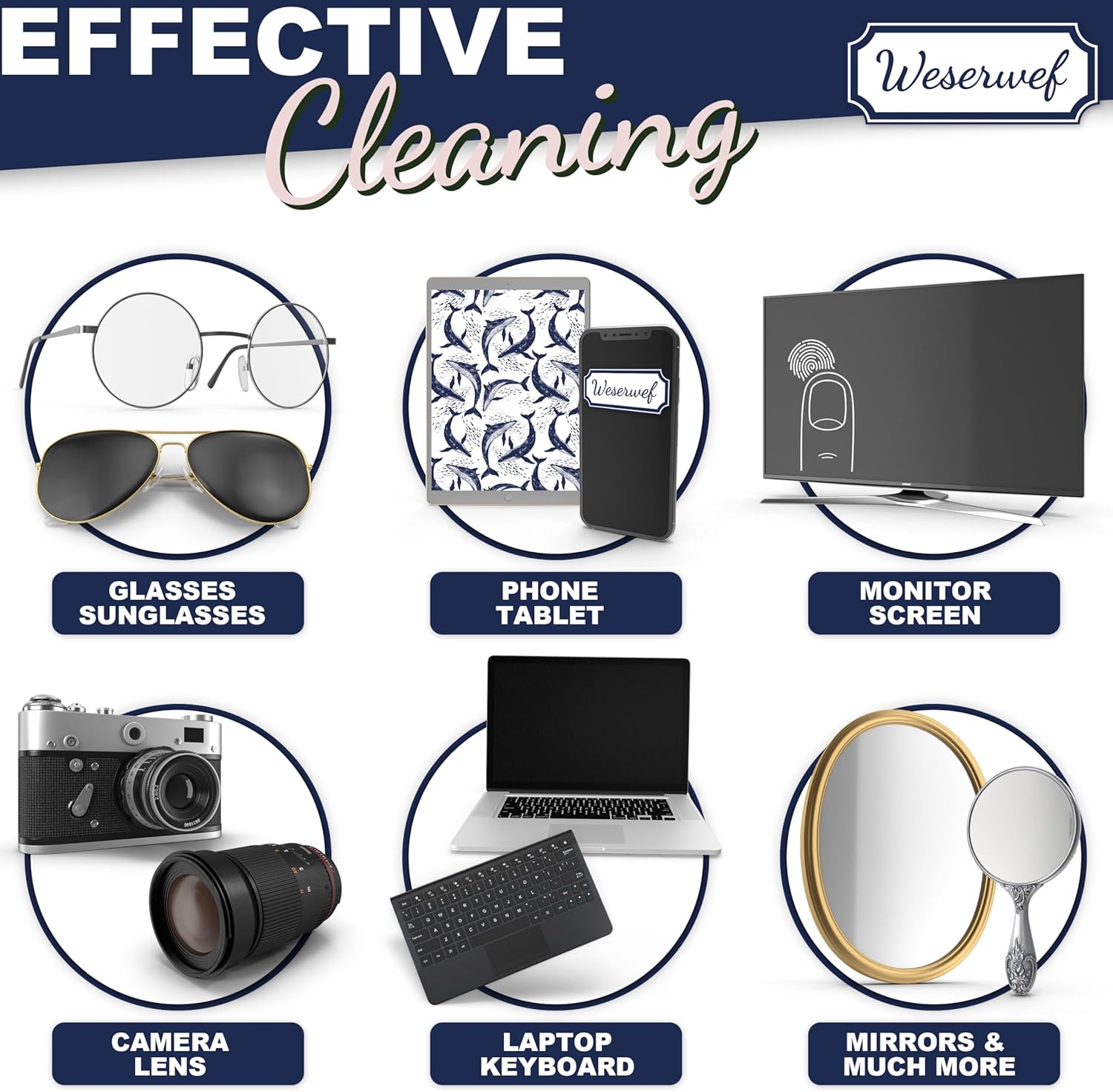 • STREAK-FREE CLEANING: Weserwef extra large glasses cleaning cloth gently and thoroughly cleans spectacles, smartphones, tablets, cameras, and other delicate surfaces. It effectively removes fingerprints, dust, dirt, and grease, leaving no streaks behind