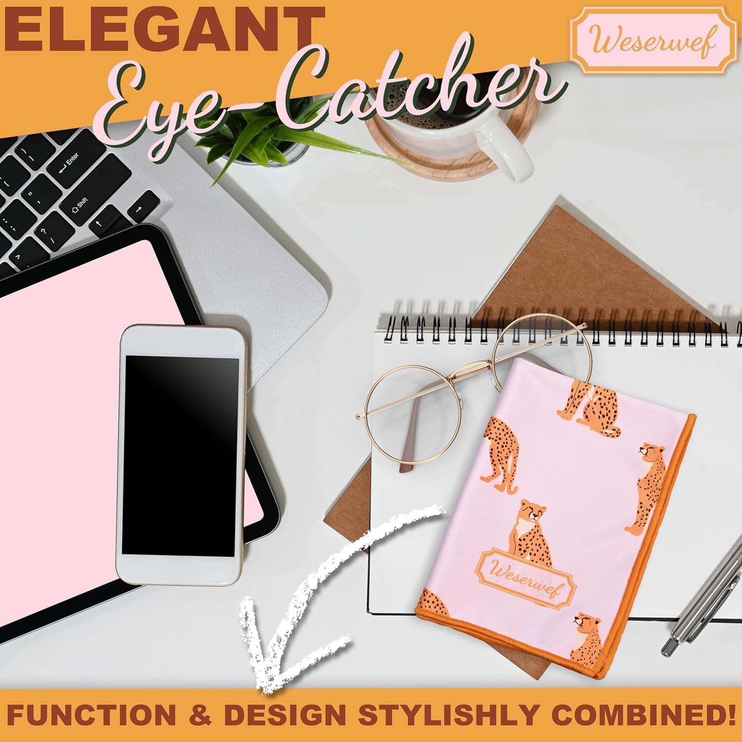 WESERWEF Design Microfiber Glasses Cleaning Cloth – Premium Cleaning Cloth for Eyeglasses, Screens, Tablets, Cameras & Lenses, 12" x 12", Ultra-Soft & Scratch-Free (Leo Pink)