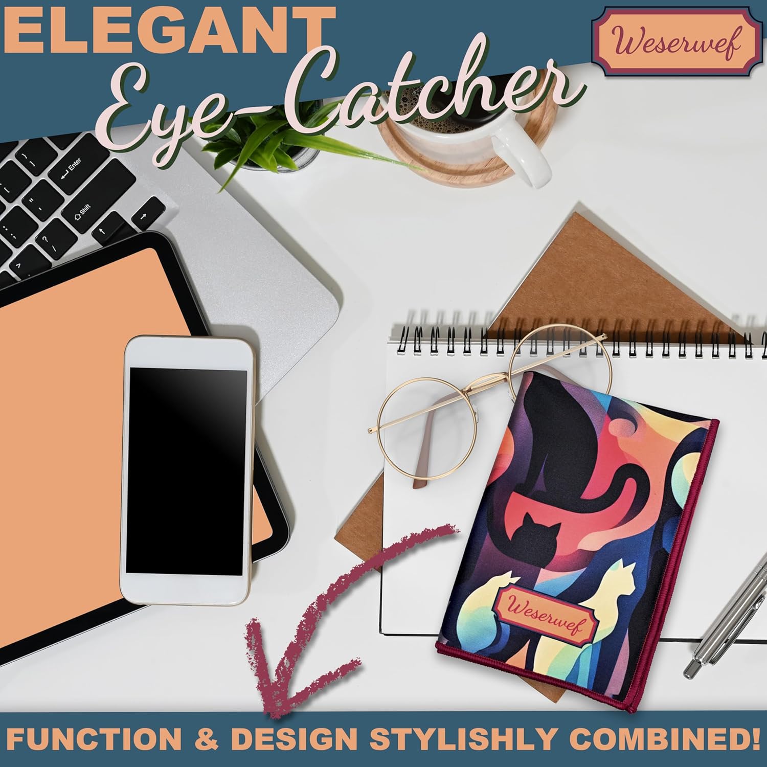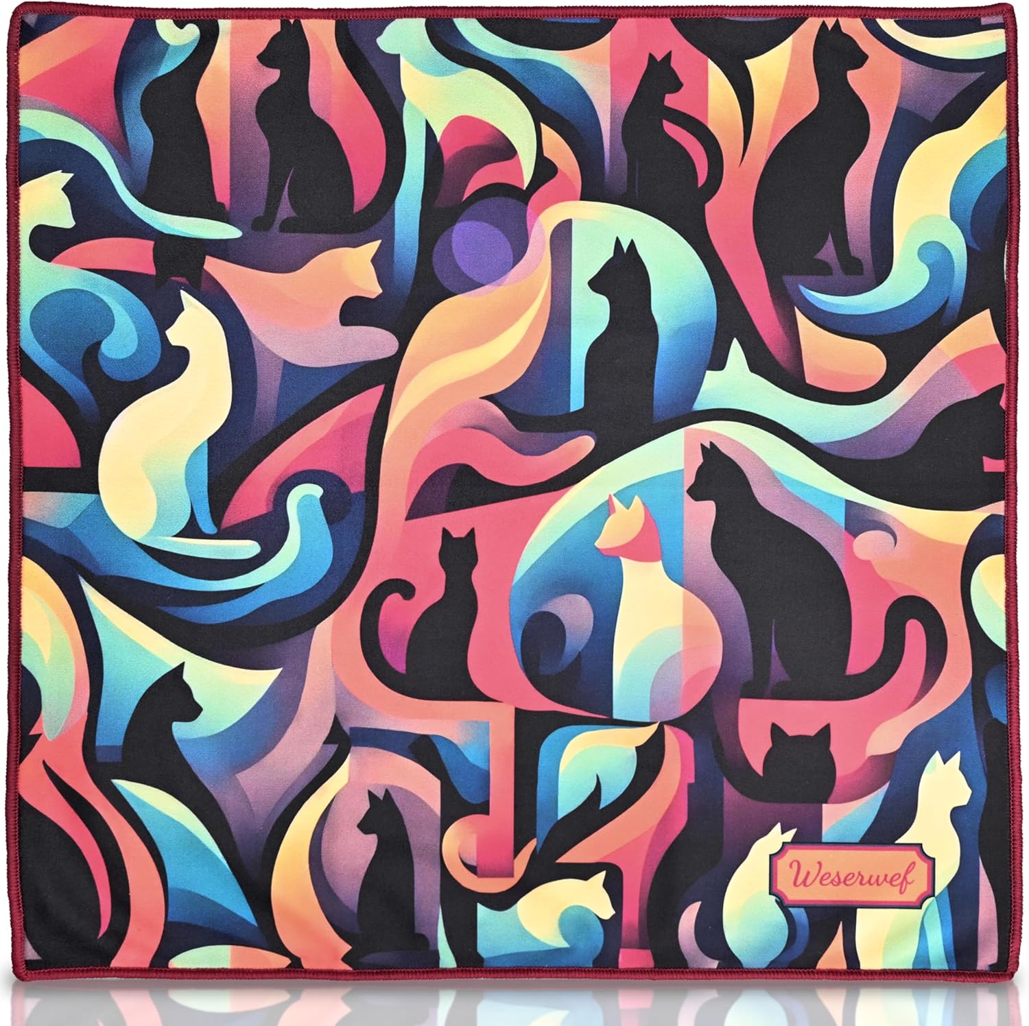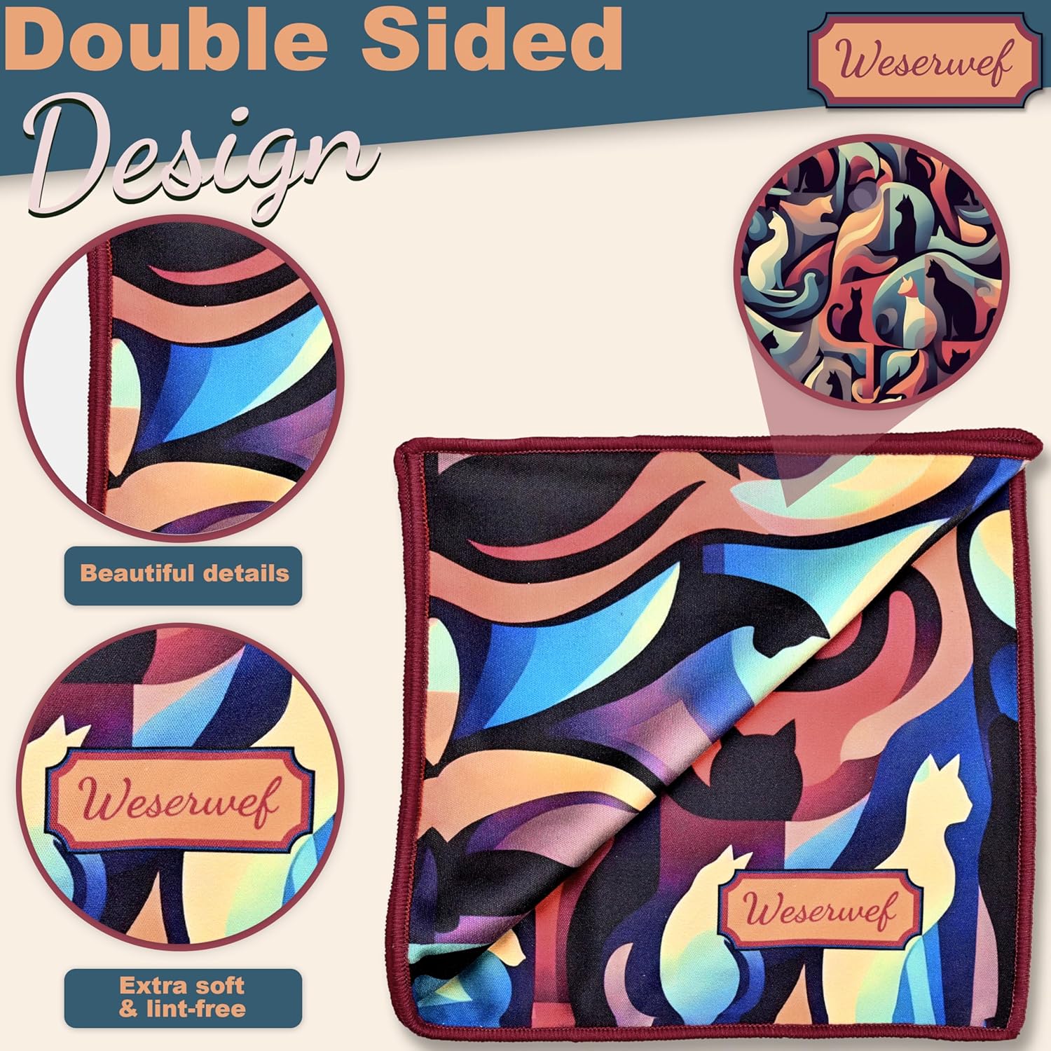 WESERWEF Design Microfiber Glasses Cleaning Cloth – Premium Cleaning Cloth for Eyeglasses, Screens, Tablets, Cameras & Lenses, 12" x 12", Ultra-Soft & Scratch-Free (Cats)